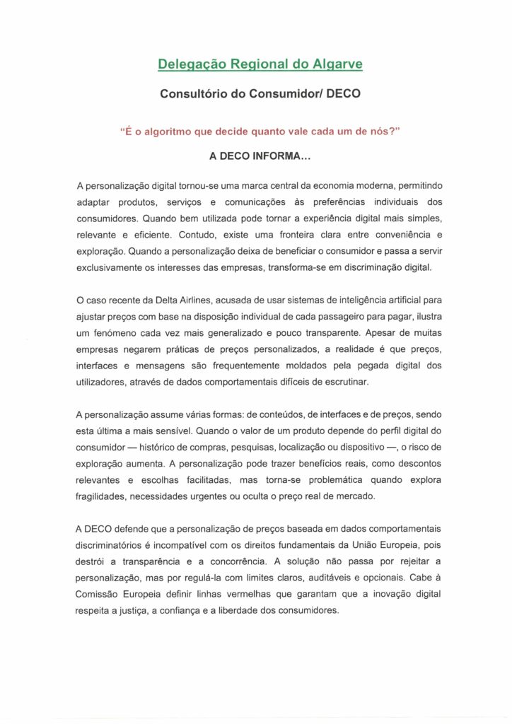 DECO – ATENDIMENTO AO CONSUMIDOR – 4 FEVEREIRO 2026