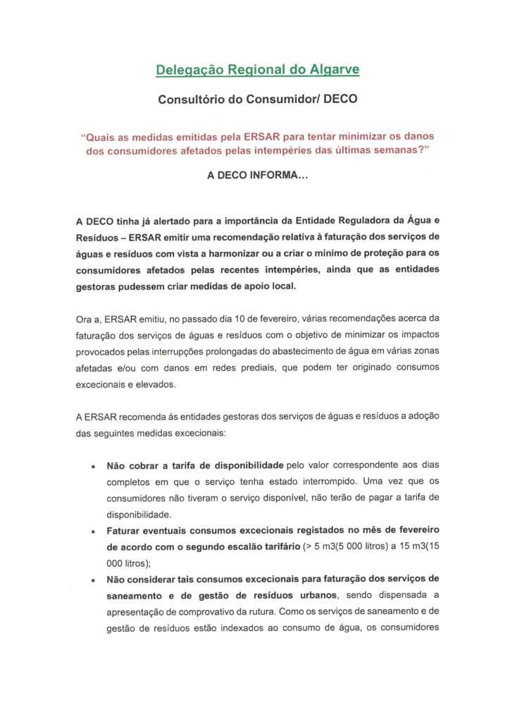 DECO – ATENDIMENTO AO CONSUMIDOR – 4 MARÇO 2026