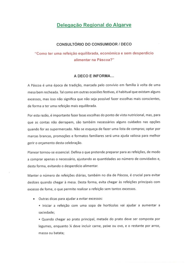 DECO – ATENDIMENTO AO CONSUMIDOR – 8 ABRIL 2026