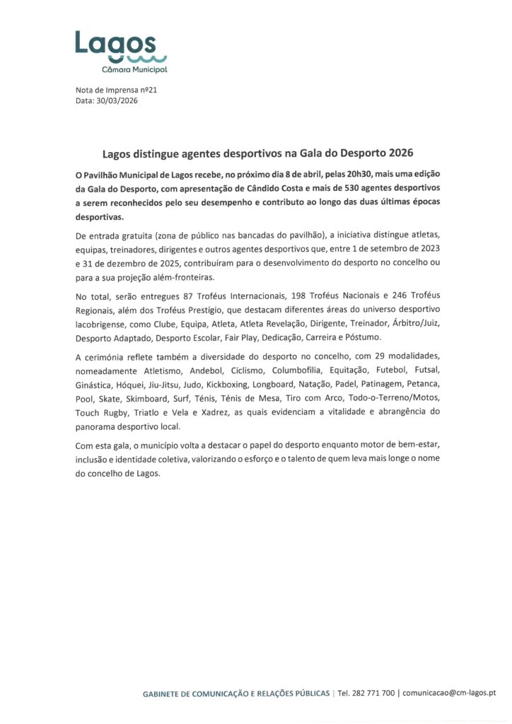 Câmara Municipal de Lagos – Notas de Imprensa