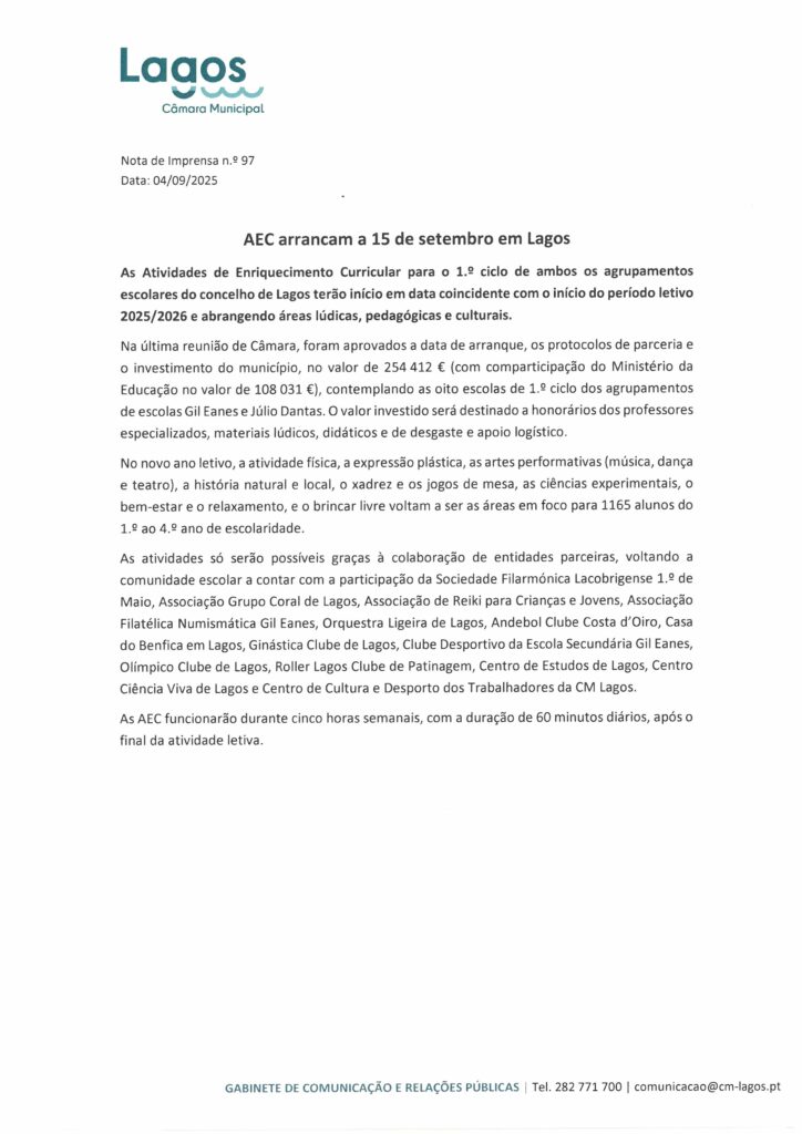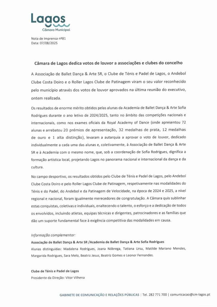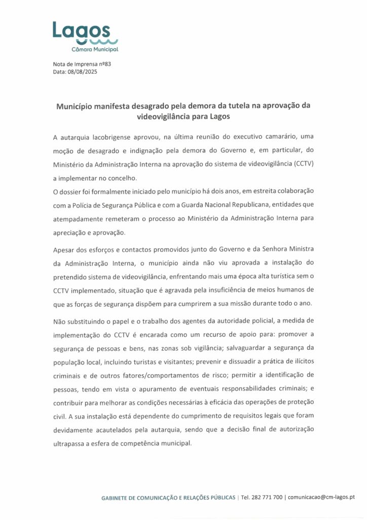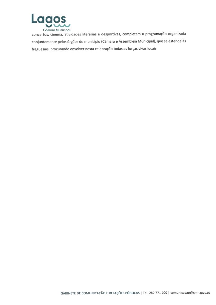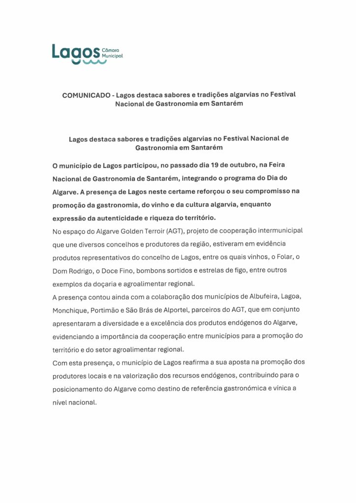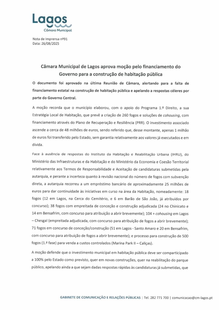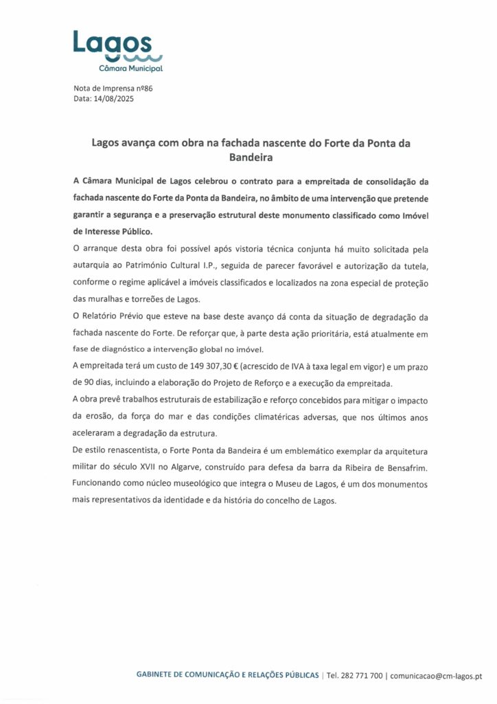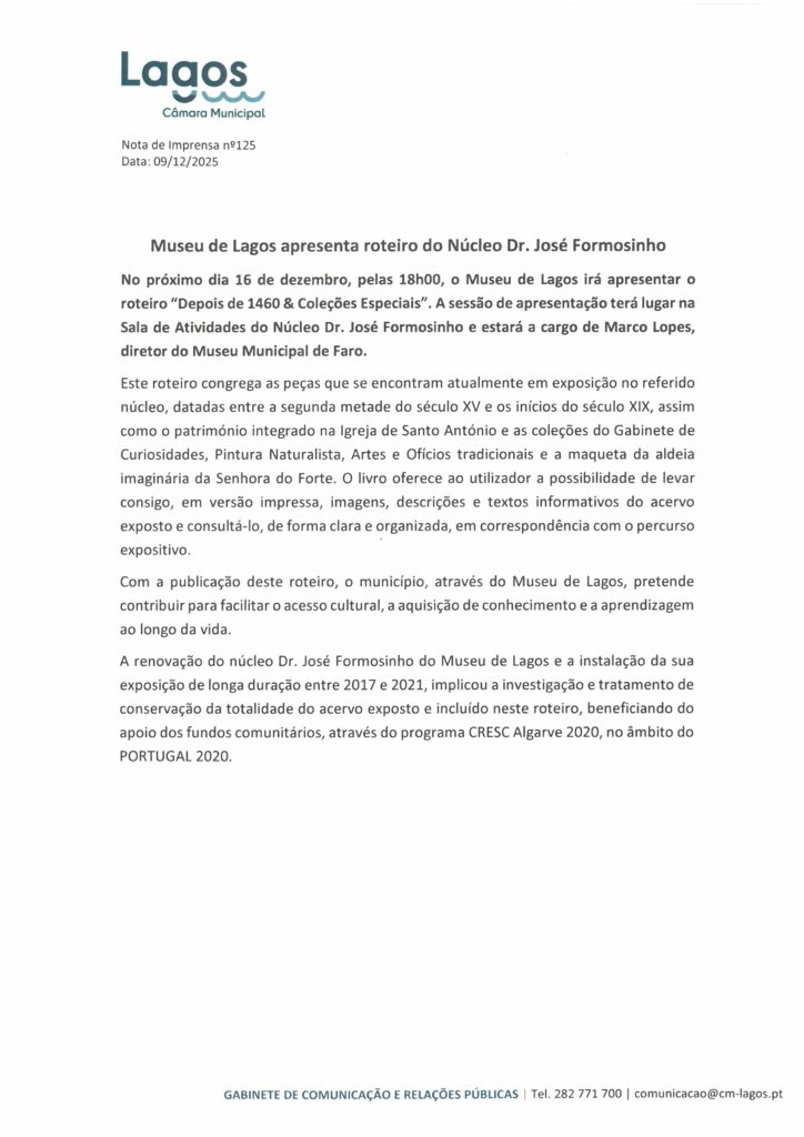 CÂMARA MUNICIPAL DE LAGOS - NOTAS DE IMPRENSA