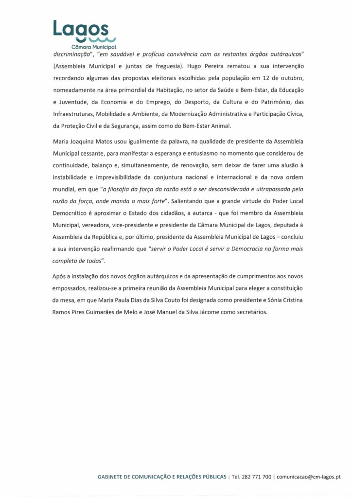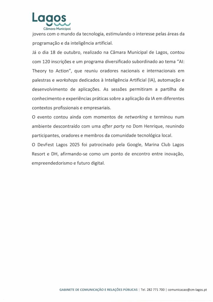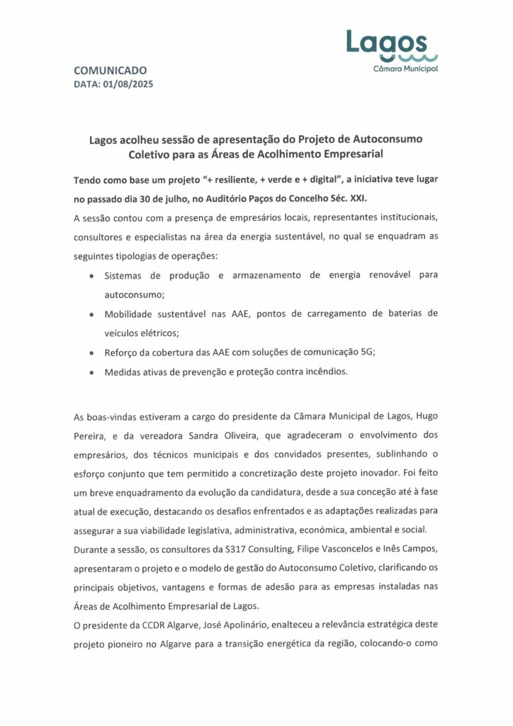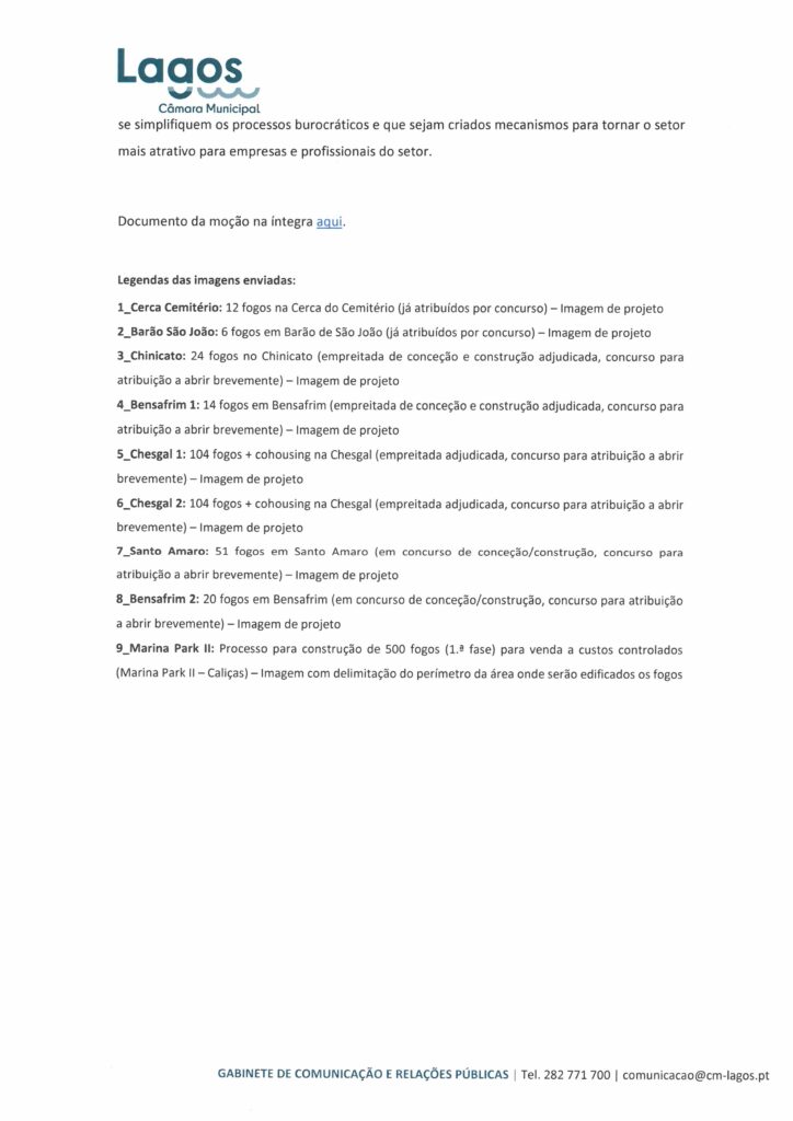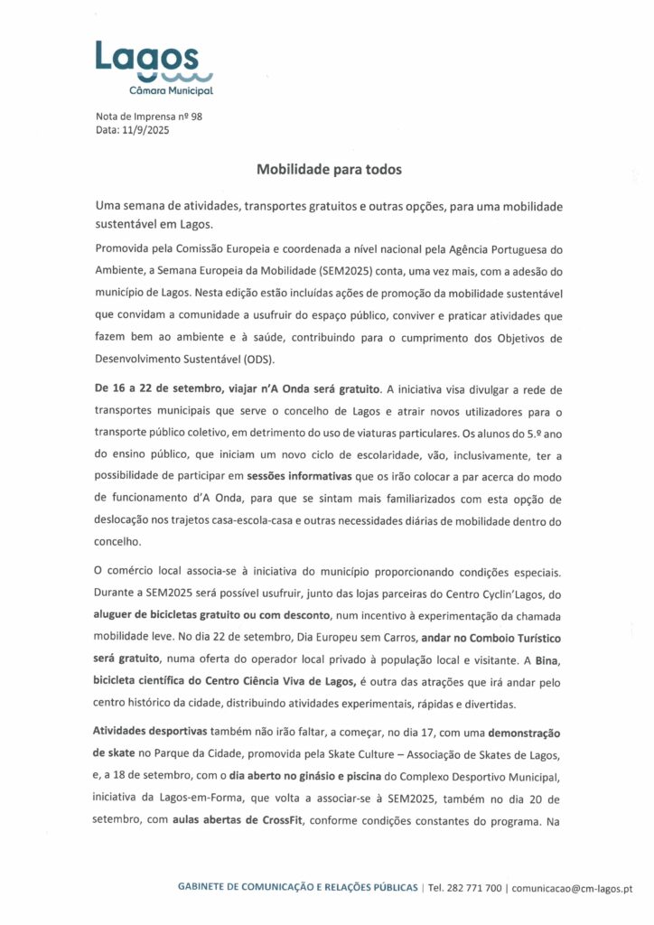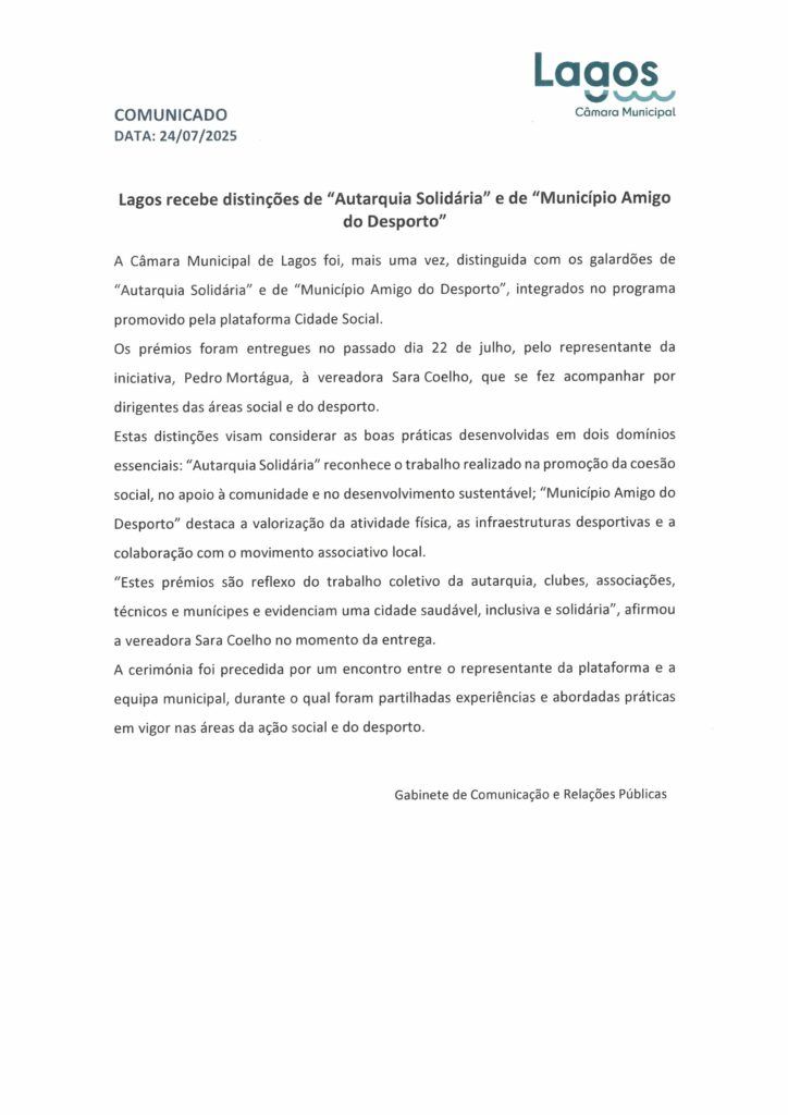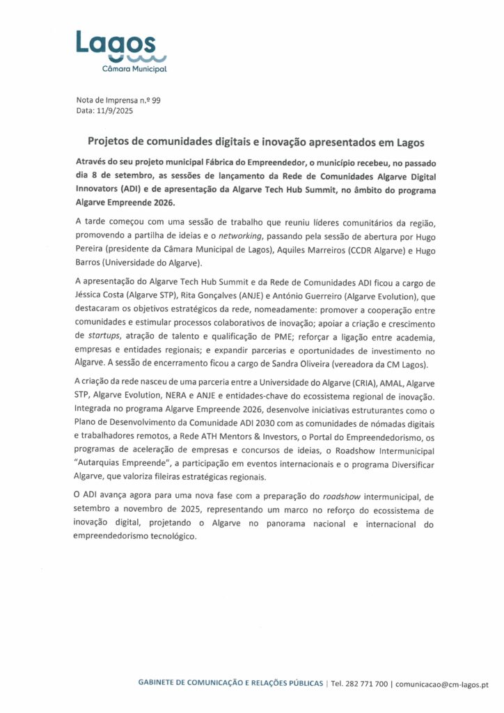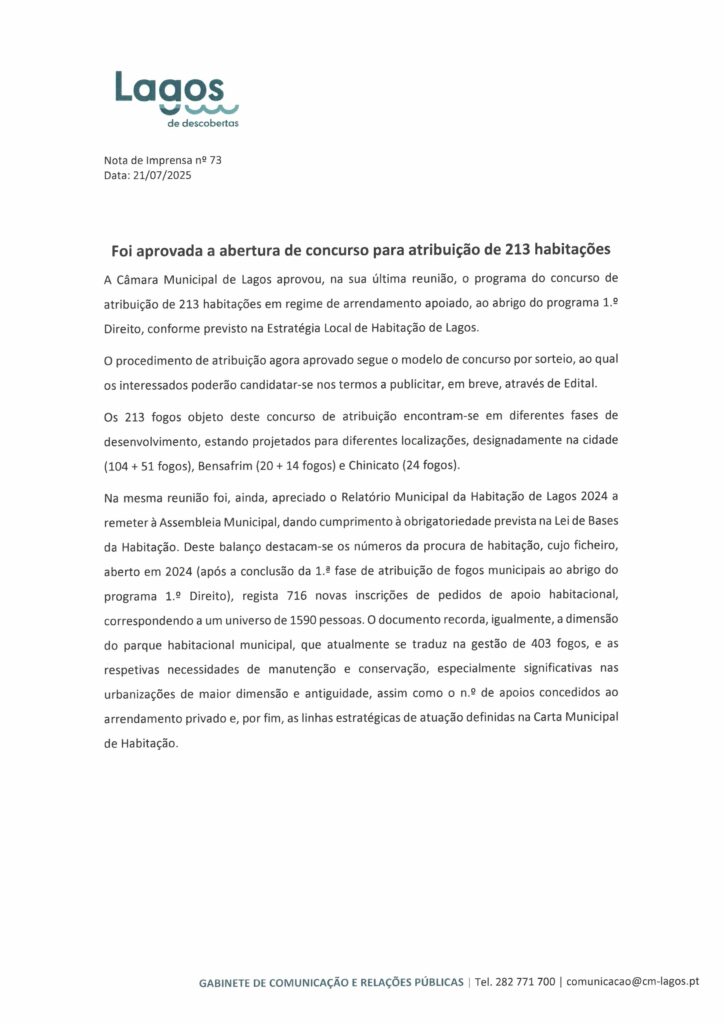 CÂMARA MUNICIPAL DE LAGOS - NOTAS DE IMPRENSA