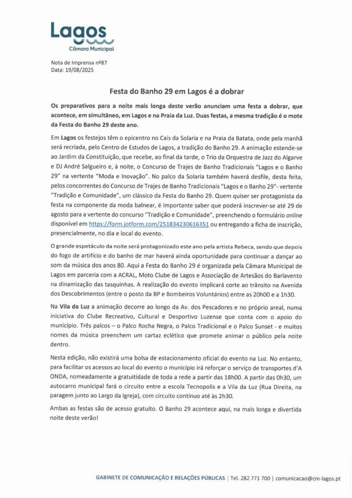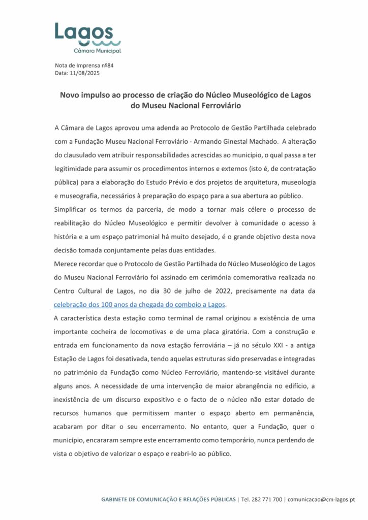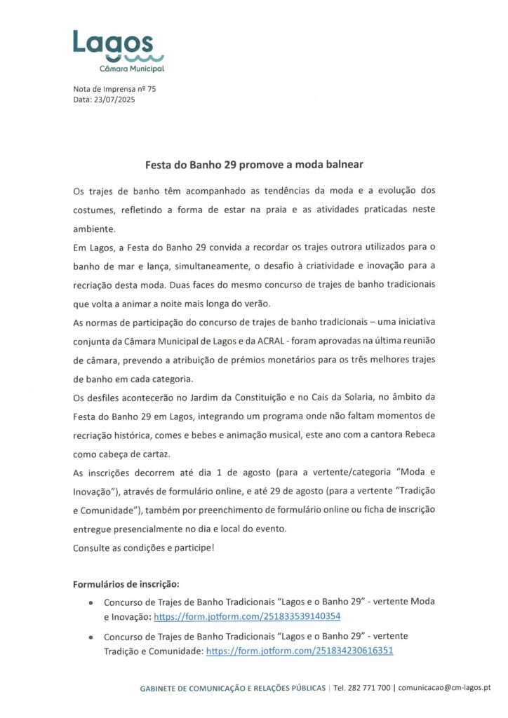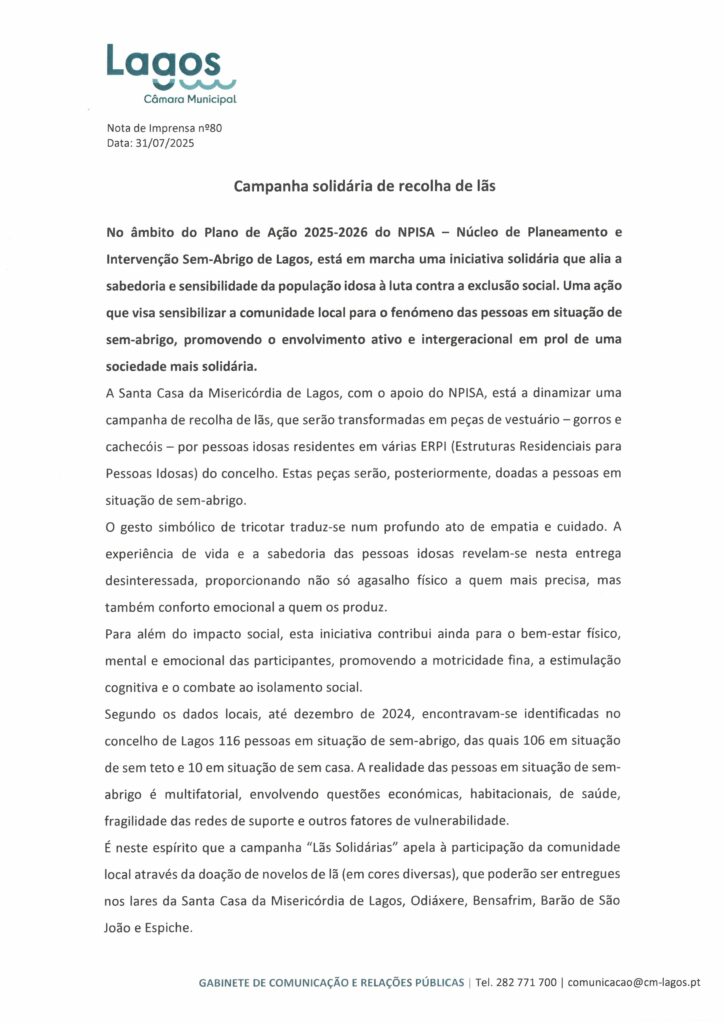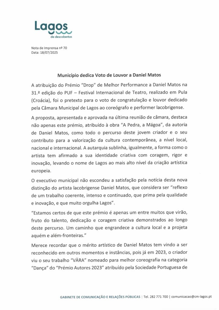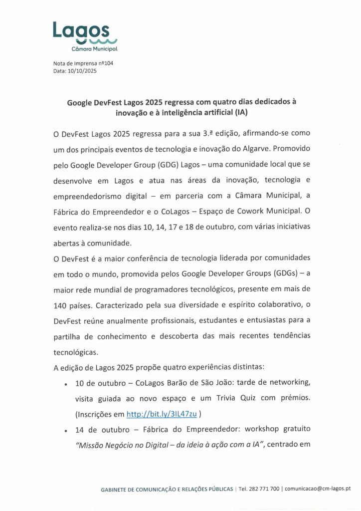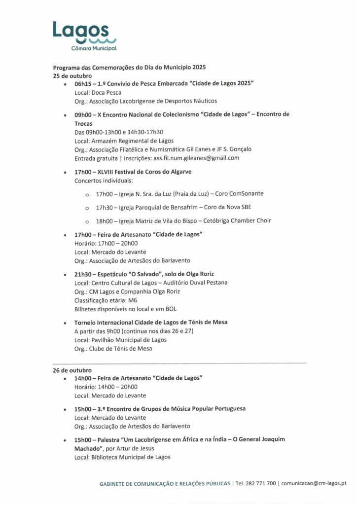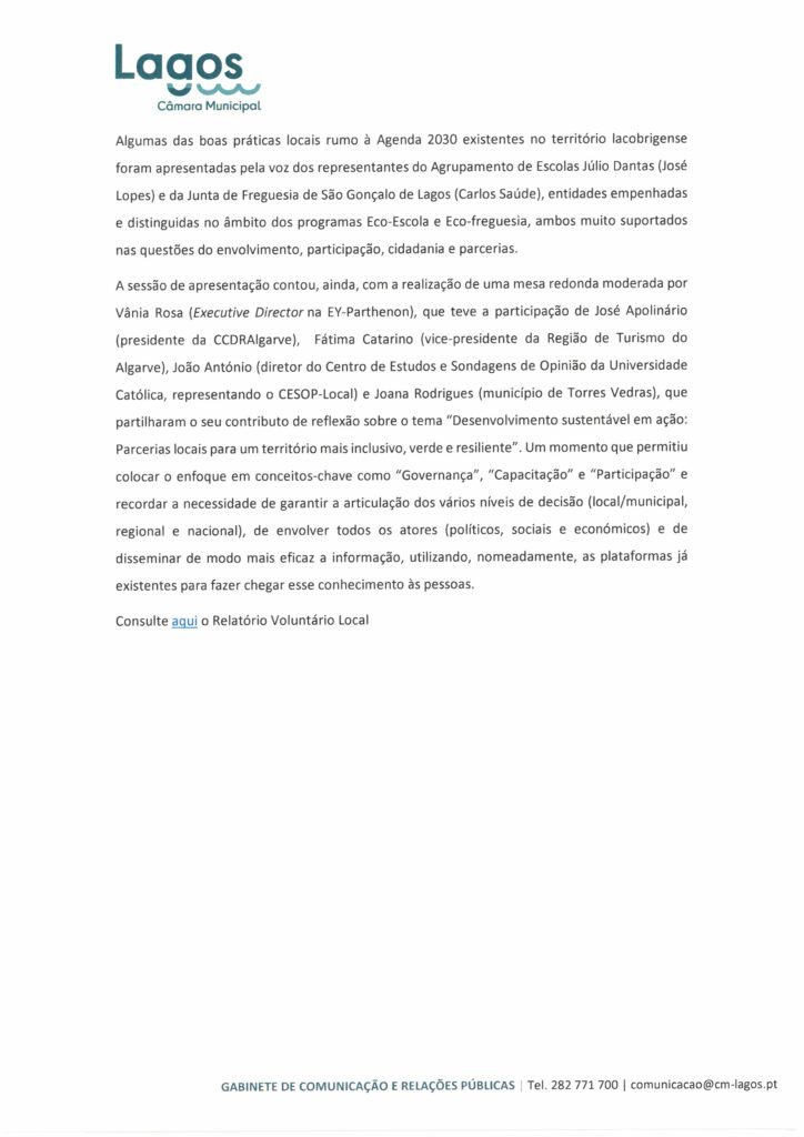 CÂMARA MUNICIPAL DE LAGOS - NOTAS DE IMPRENSA