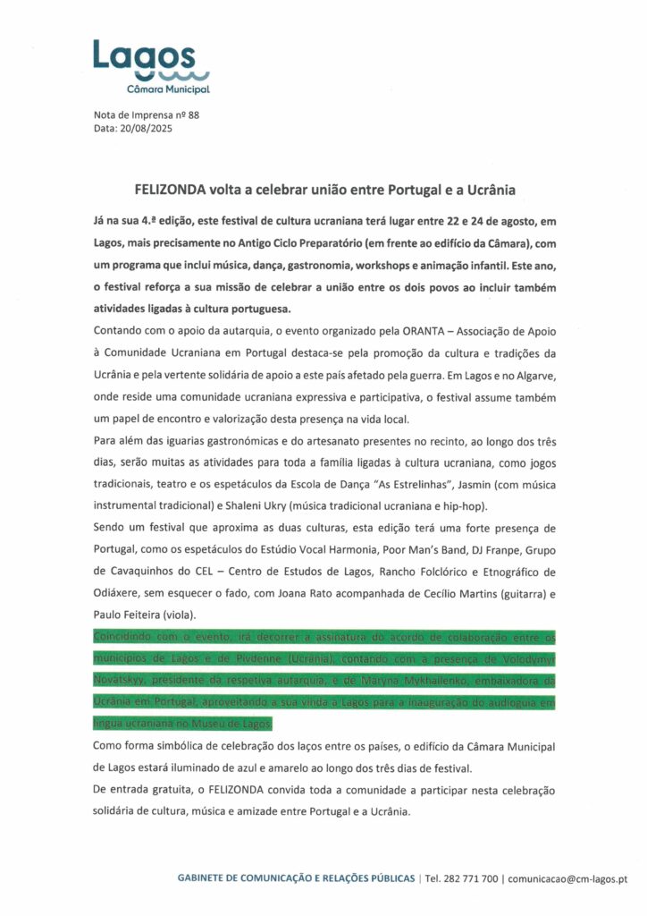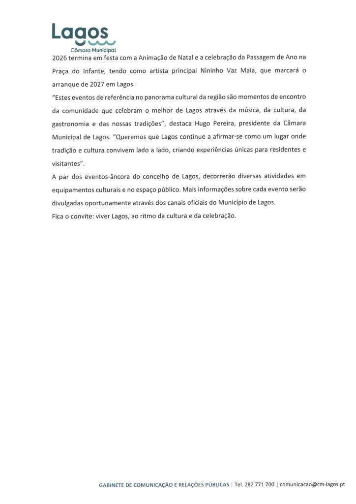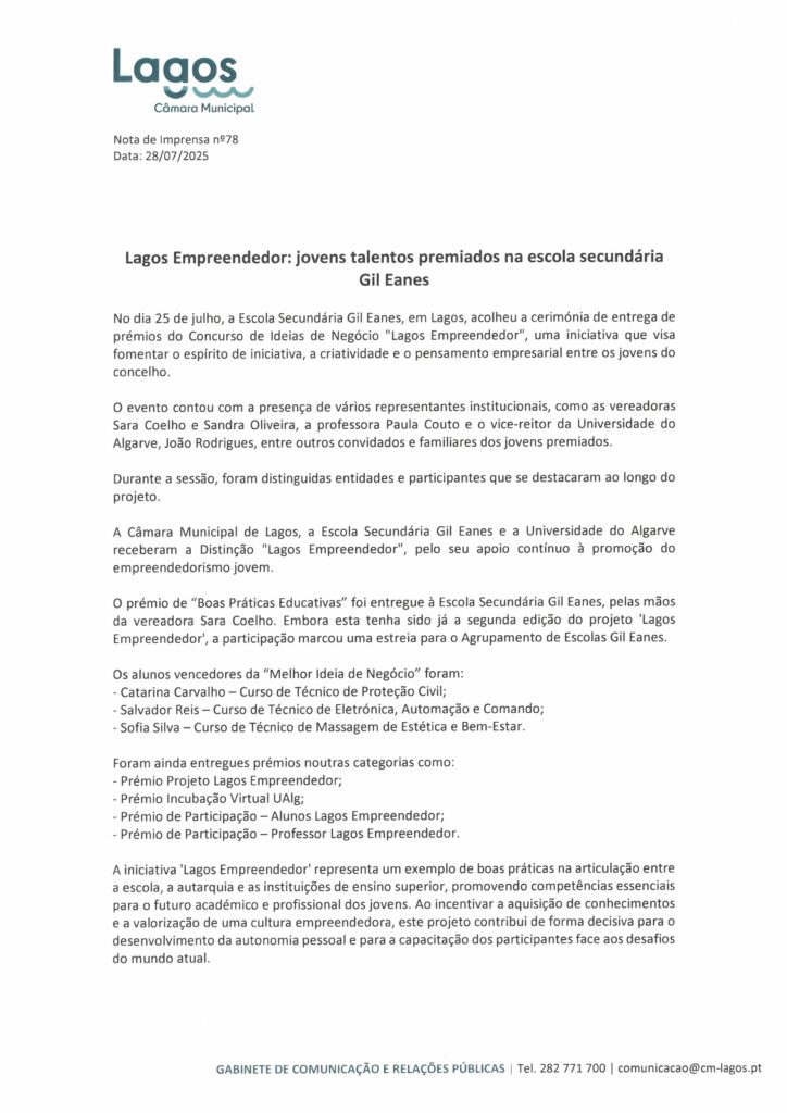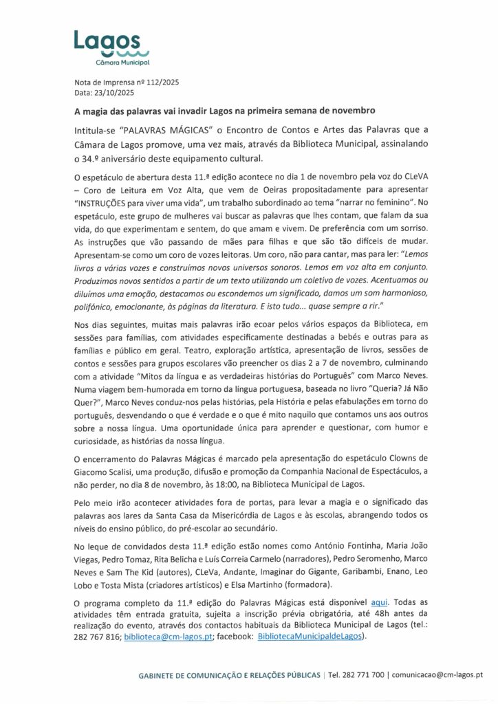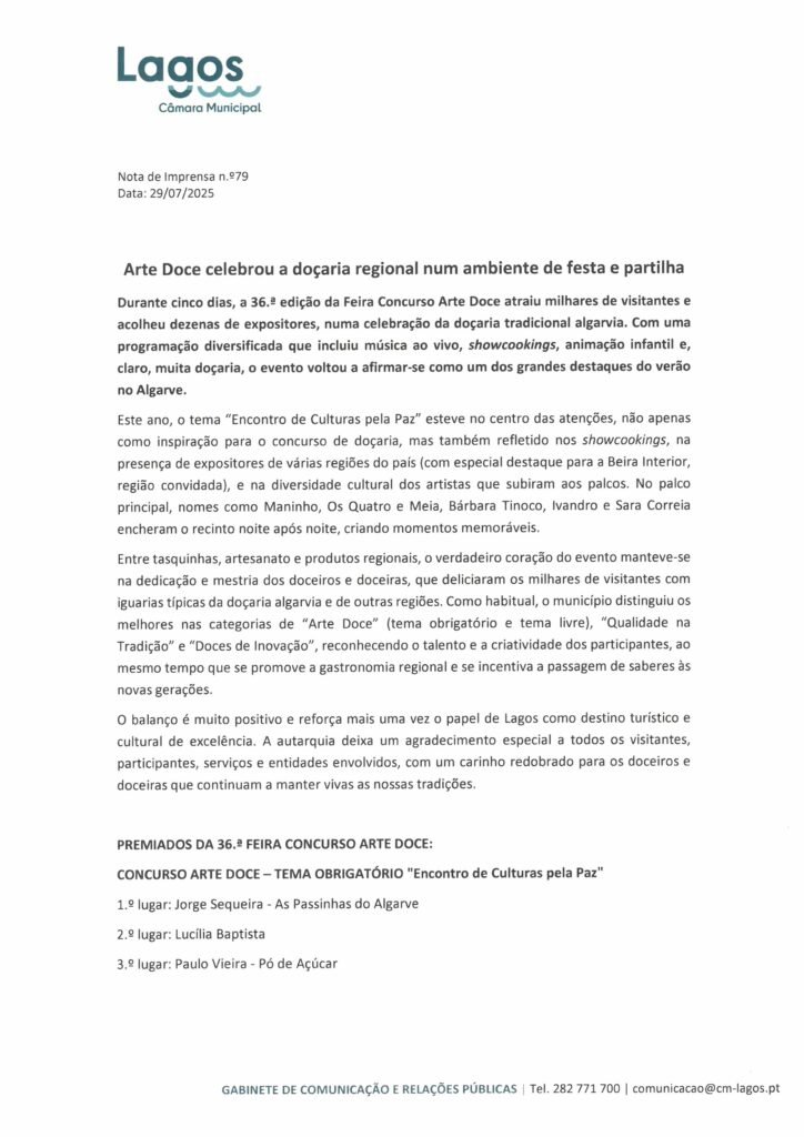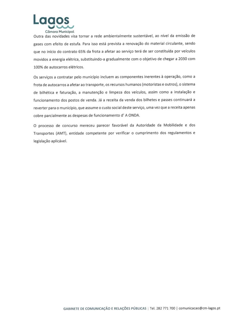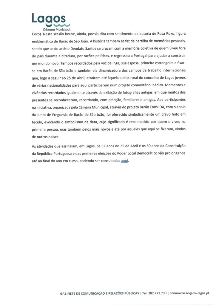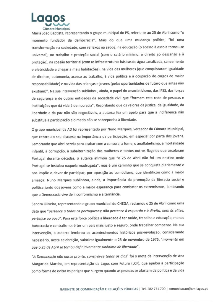 CÂMARA MUNICIPAL DE LAGOS - NOTAS DE IMPRENSA
