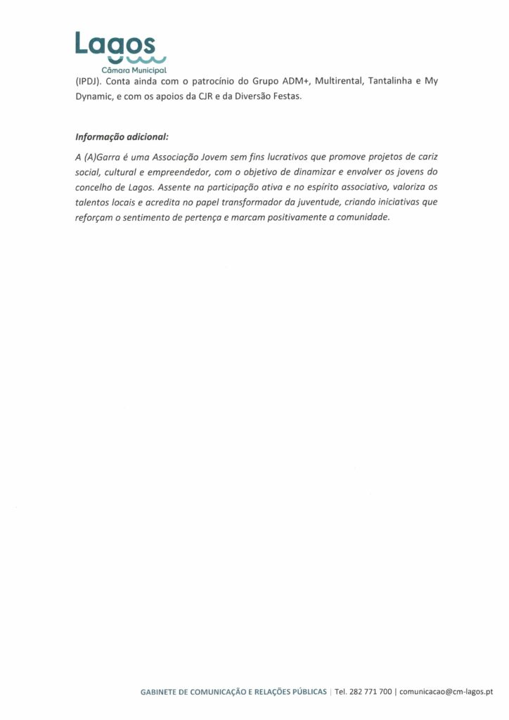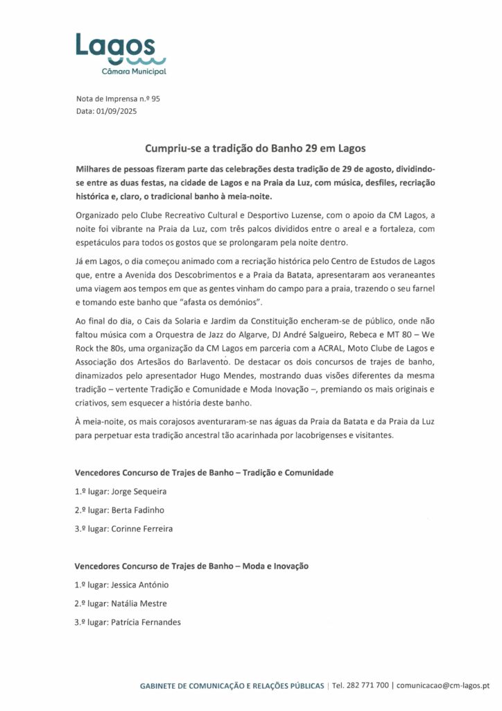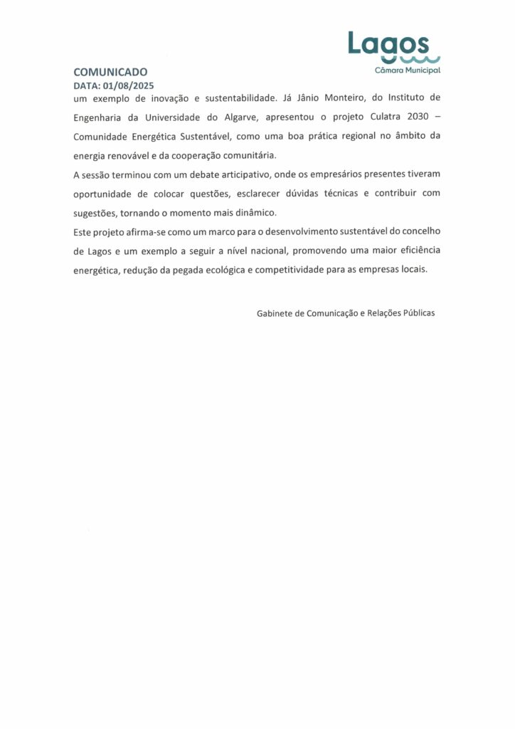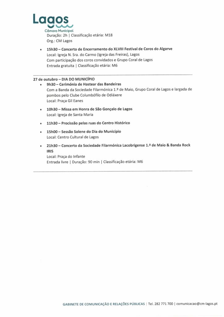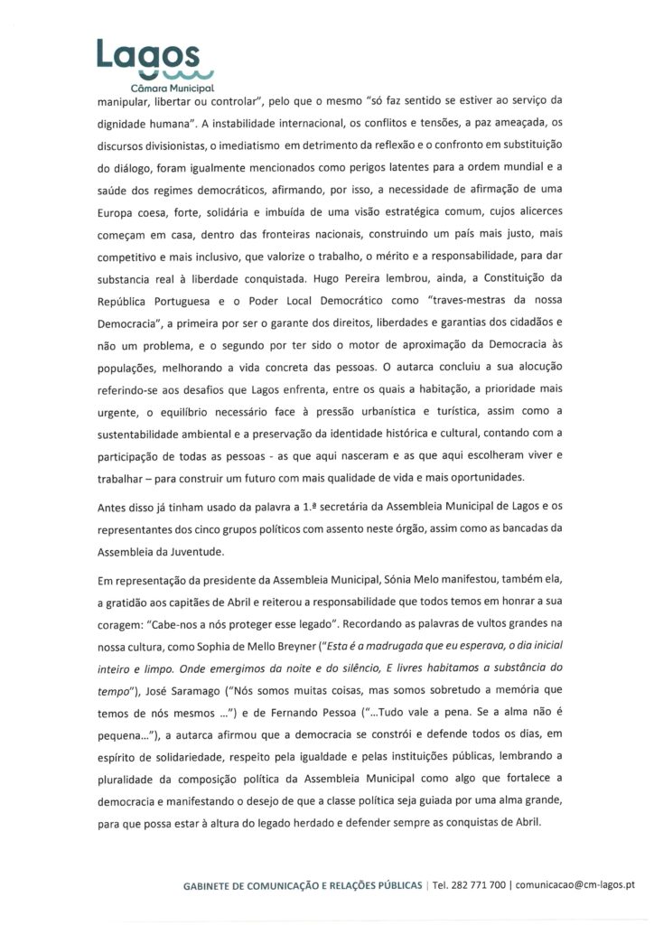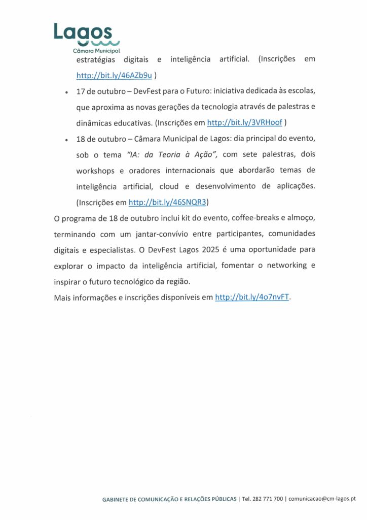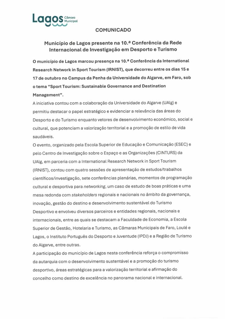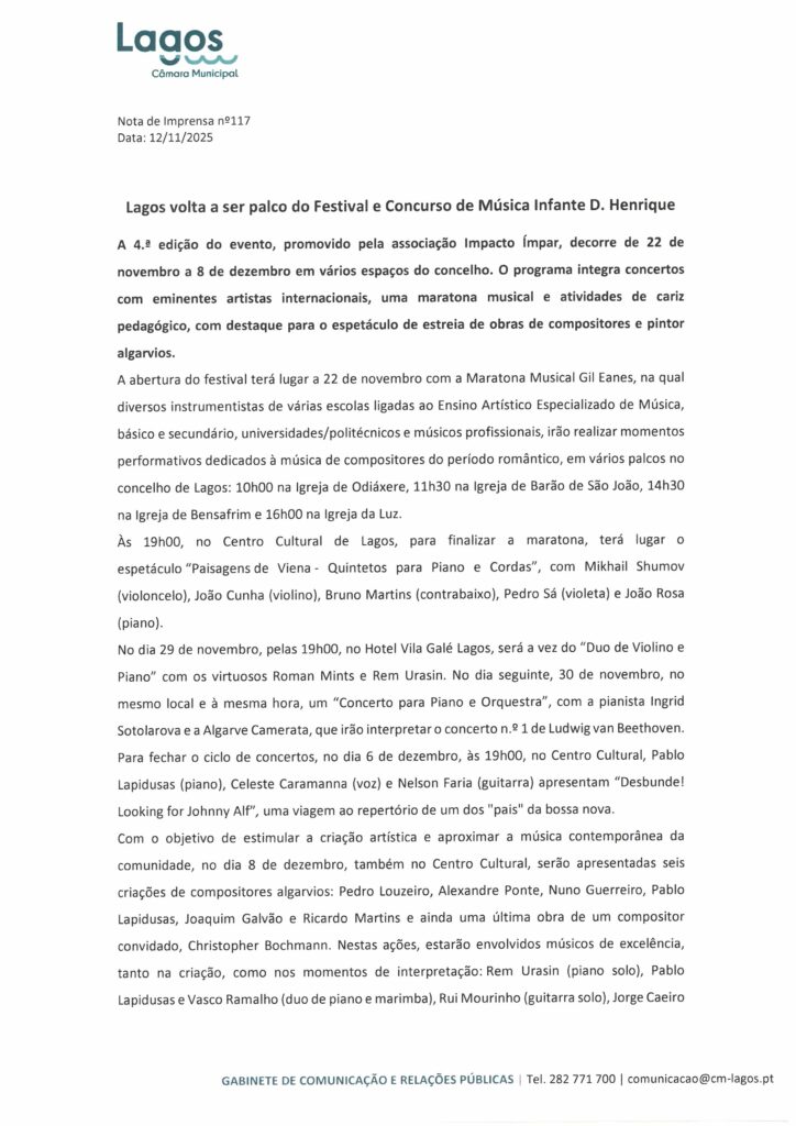 CÂMARA MUNICIPAL DE LAGOS - NOTAS DE IMPRENSA