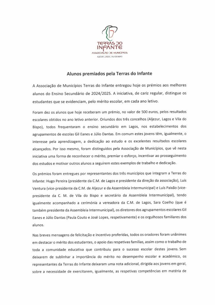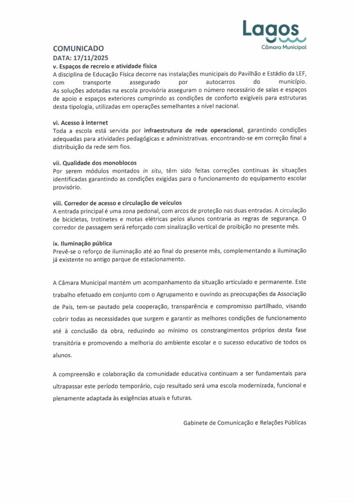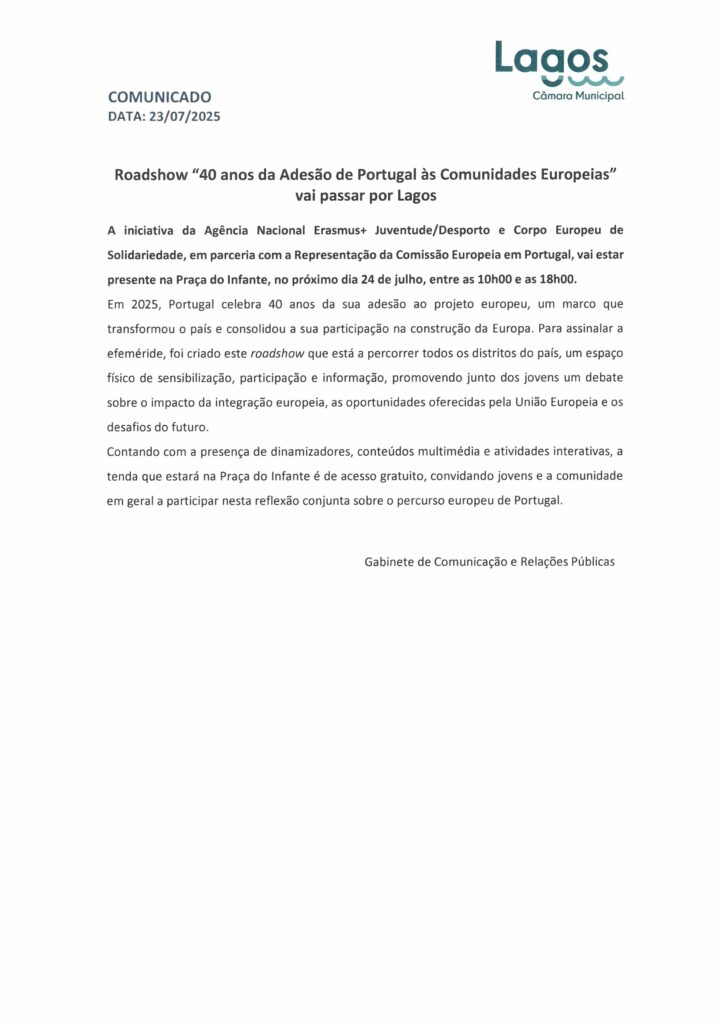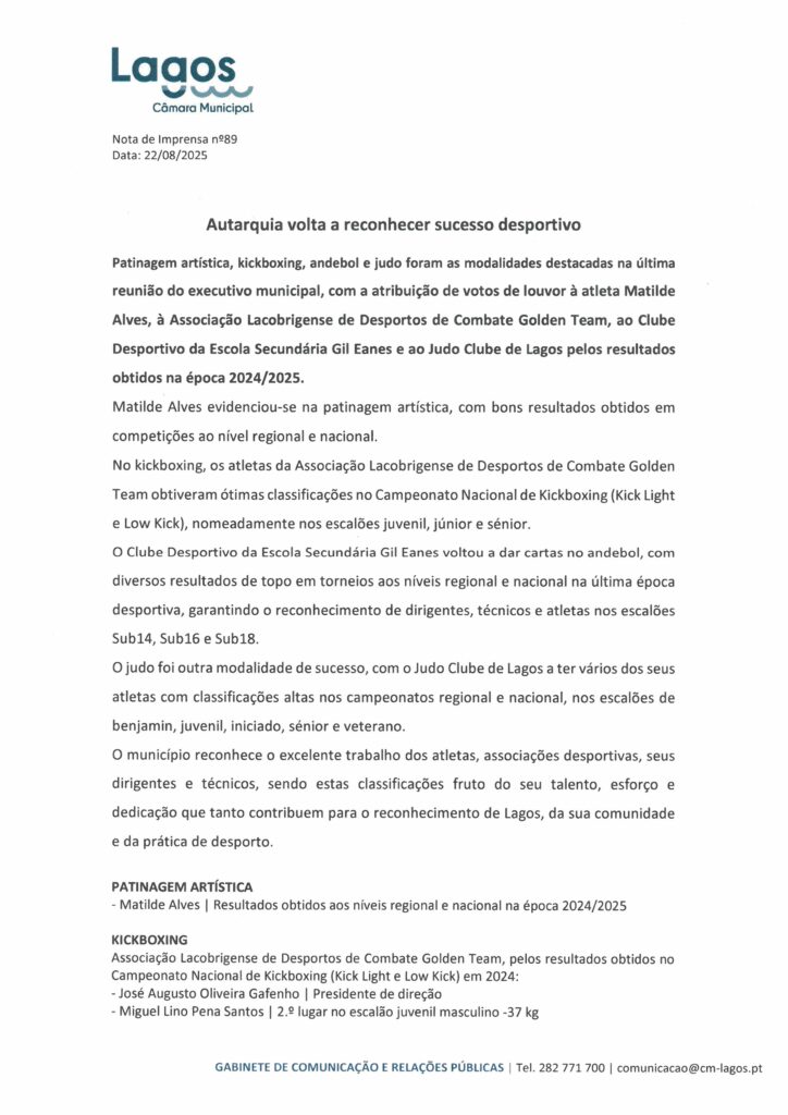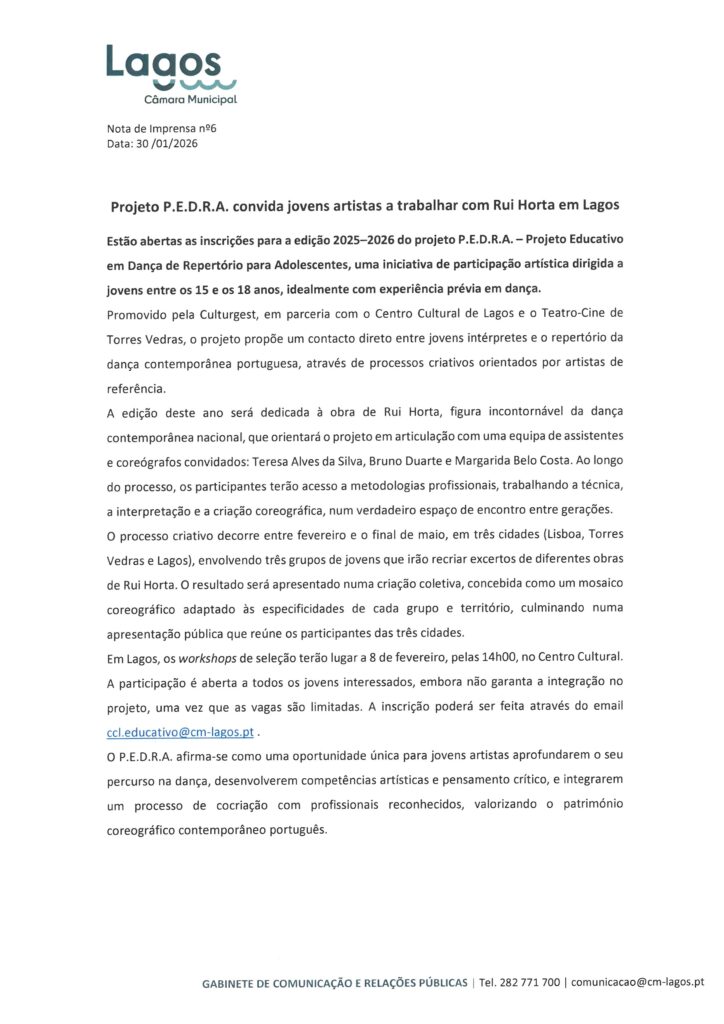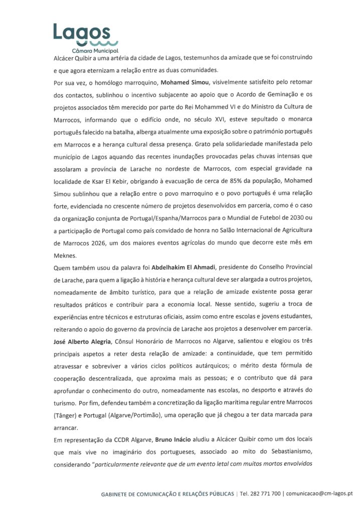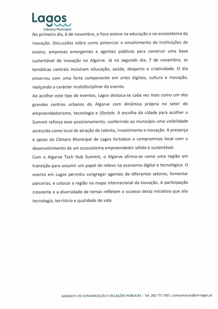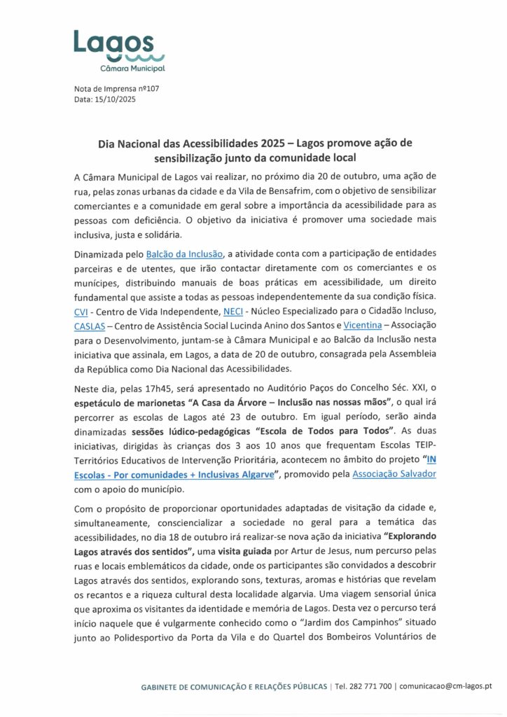 CÂMARA MUNICIPAL DE LAGOS - NOTAS DE IMPRENSA