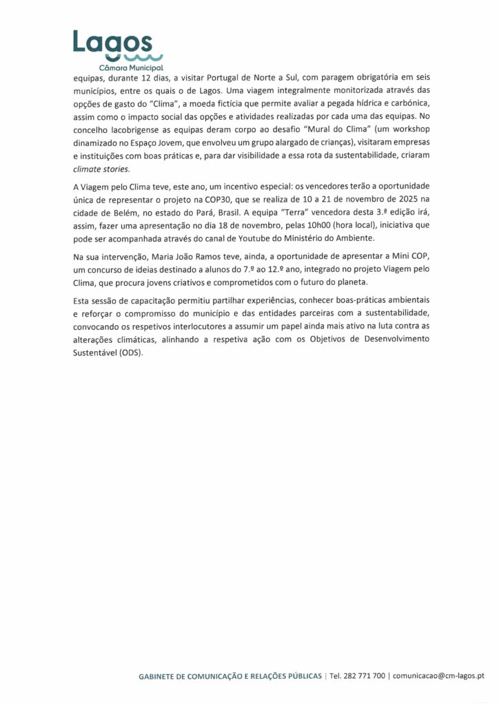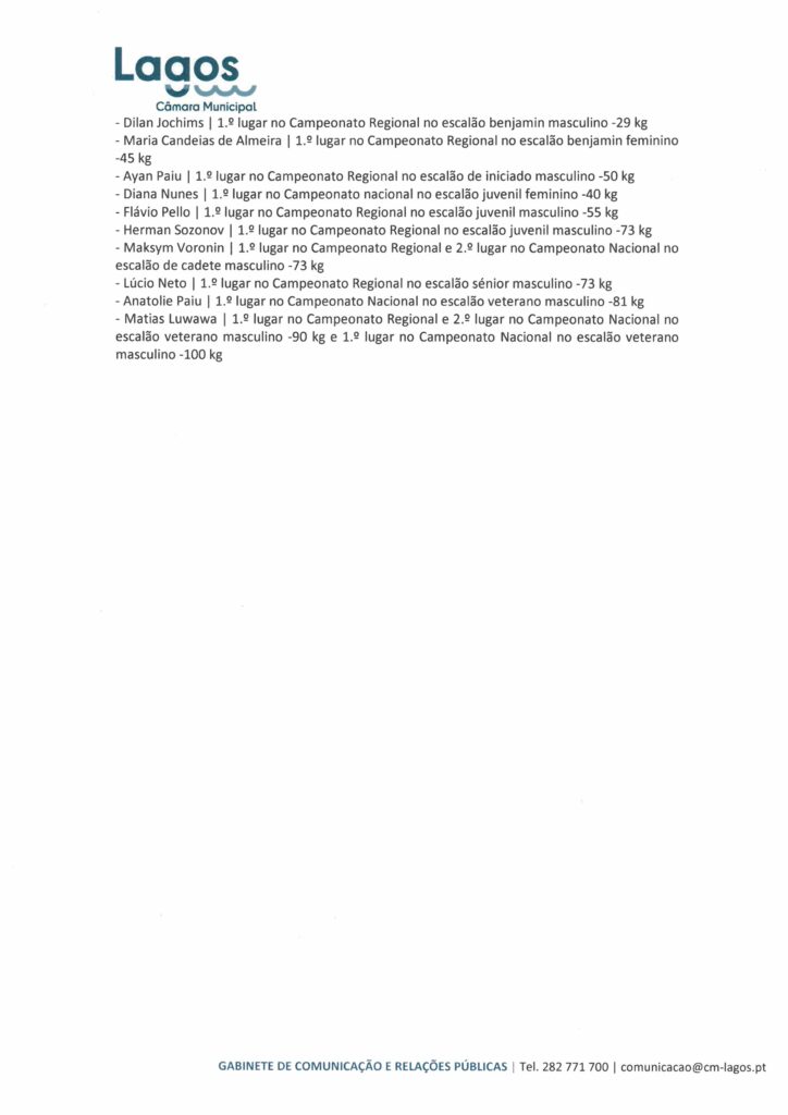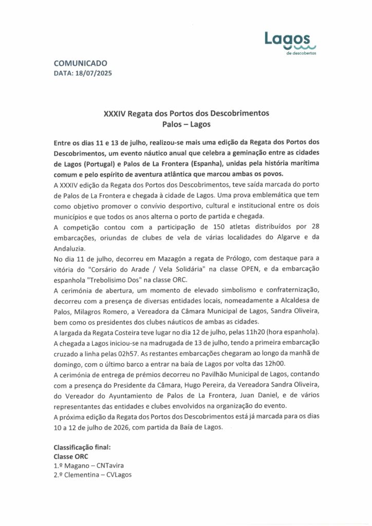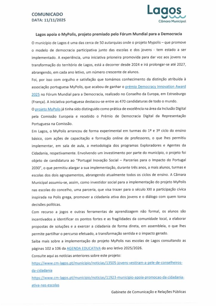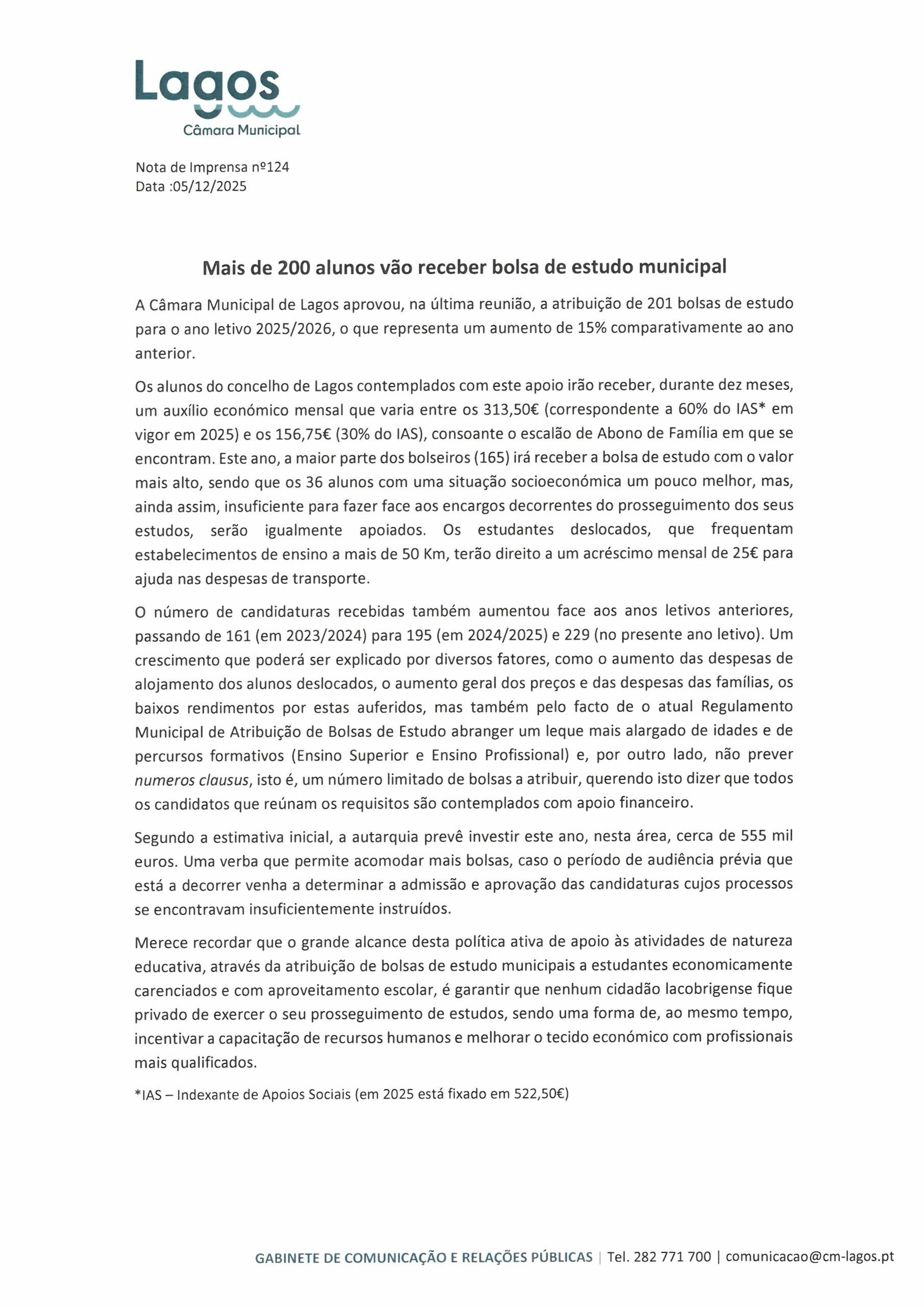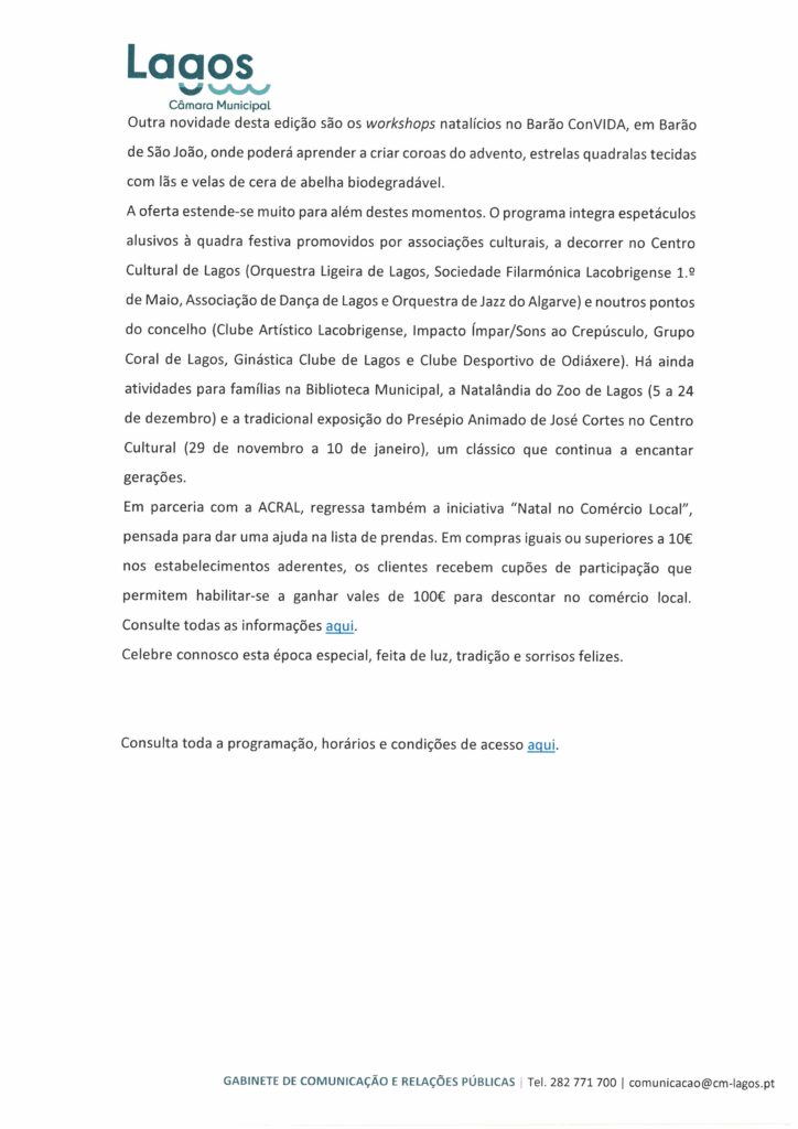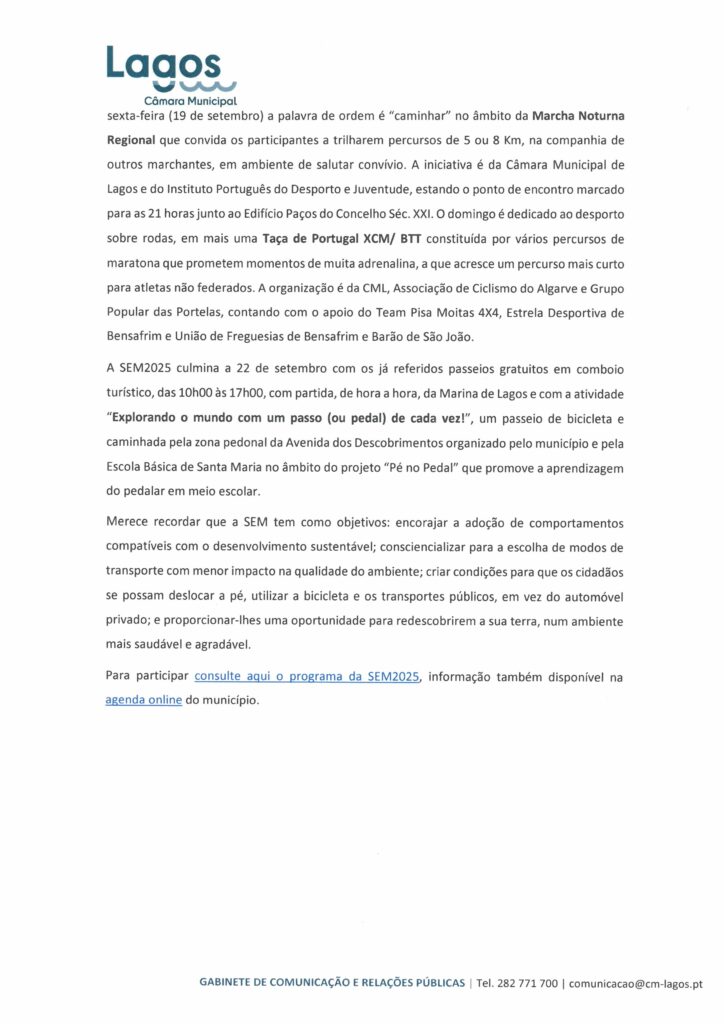 CÂMARA MUNICIPAL DE LAGOS - NOTAS DE IMPRENSA