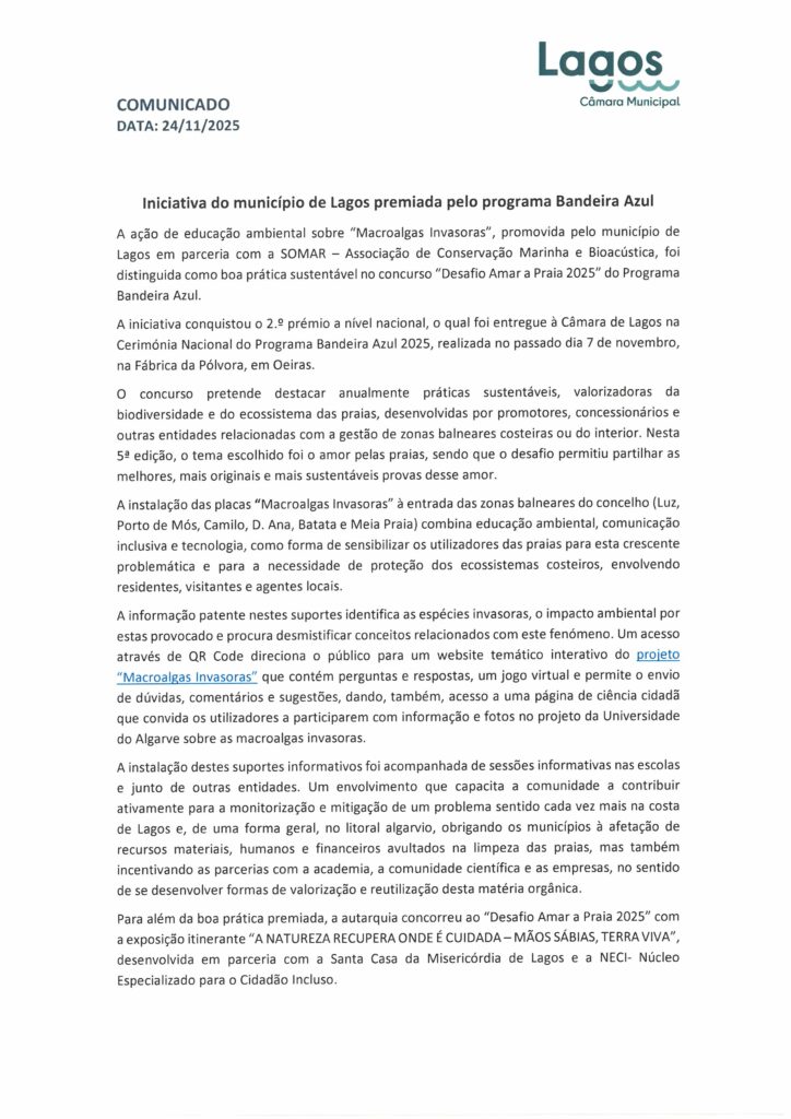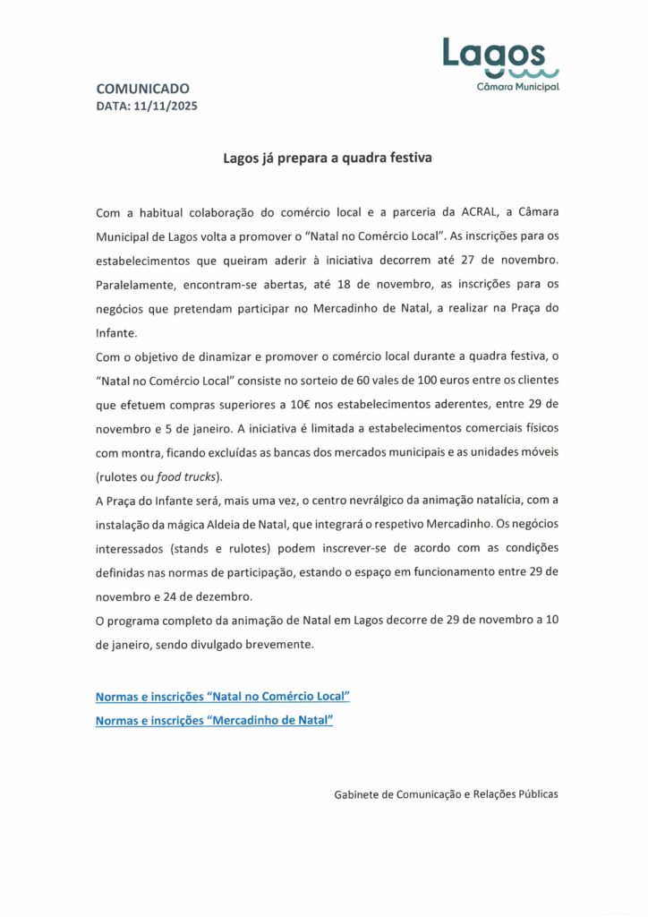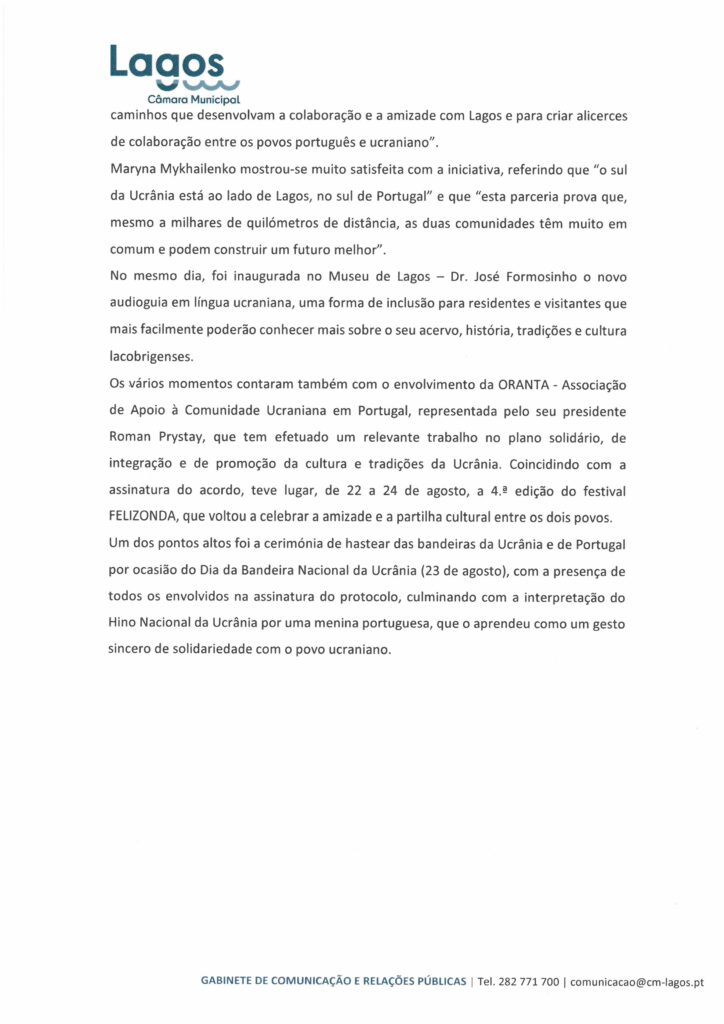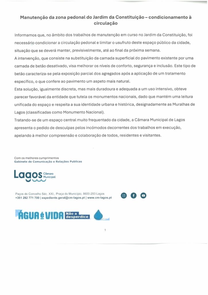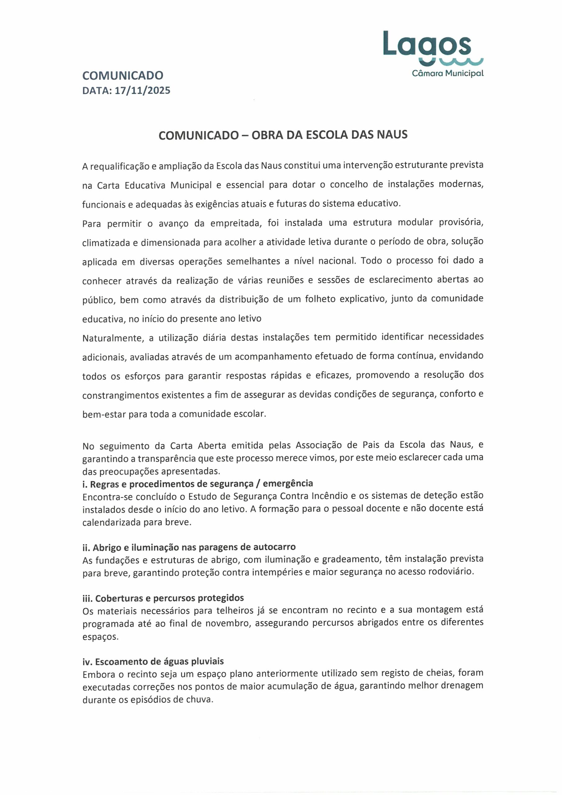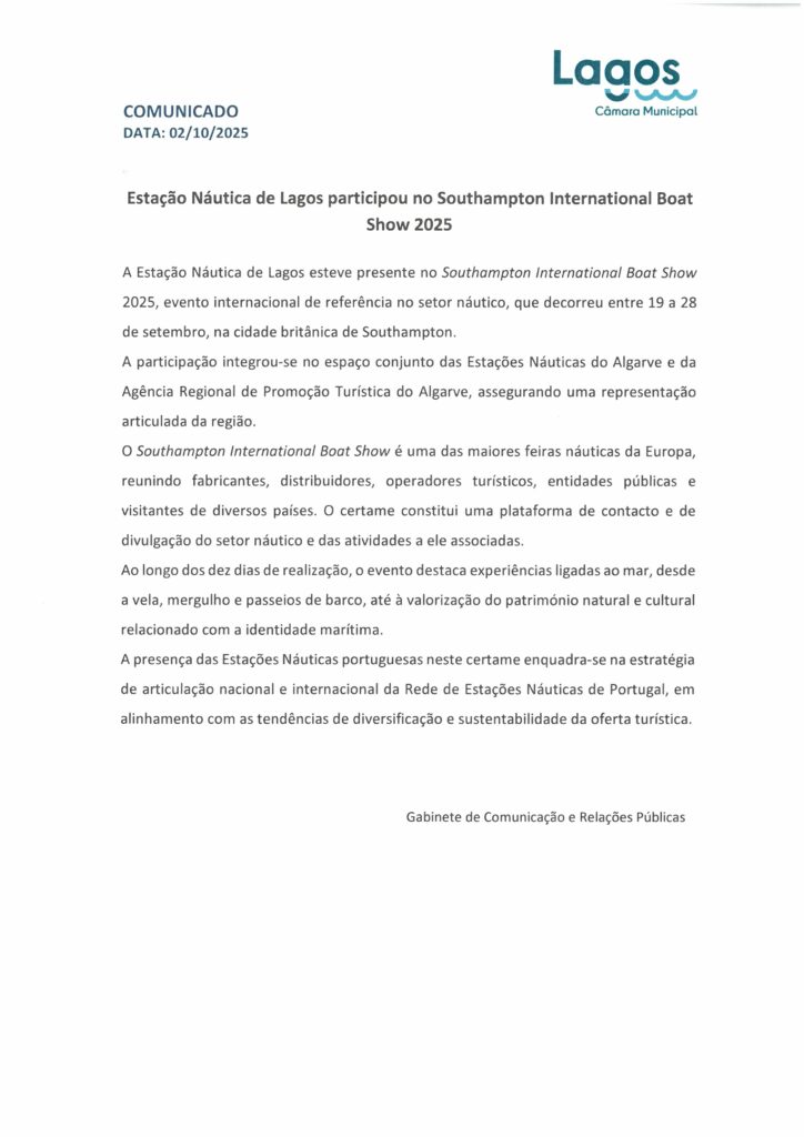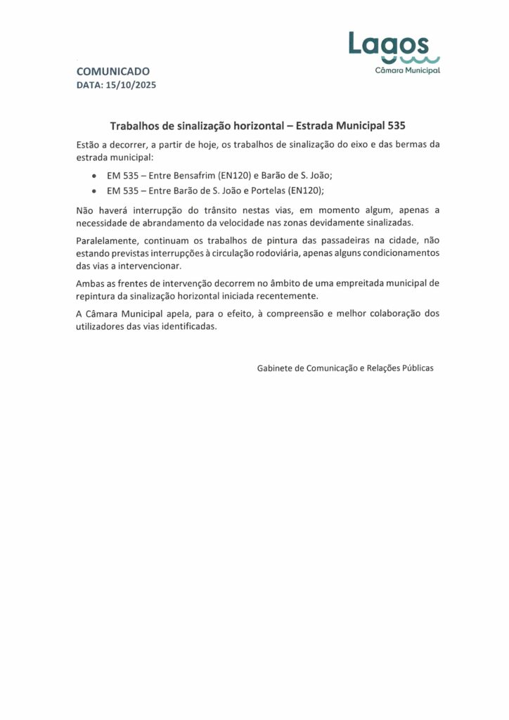 CÂMARA MUNICIPAL DE LAGOS - NOTAS DE IMPRENSA
