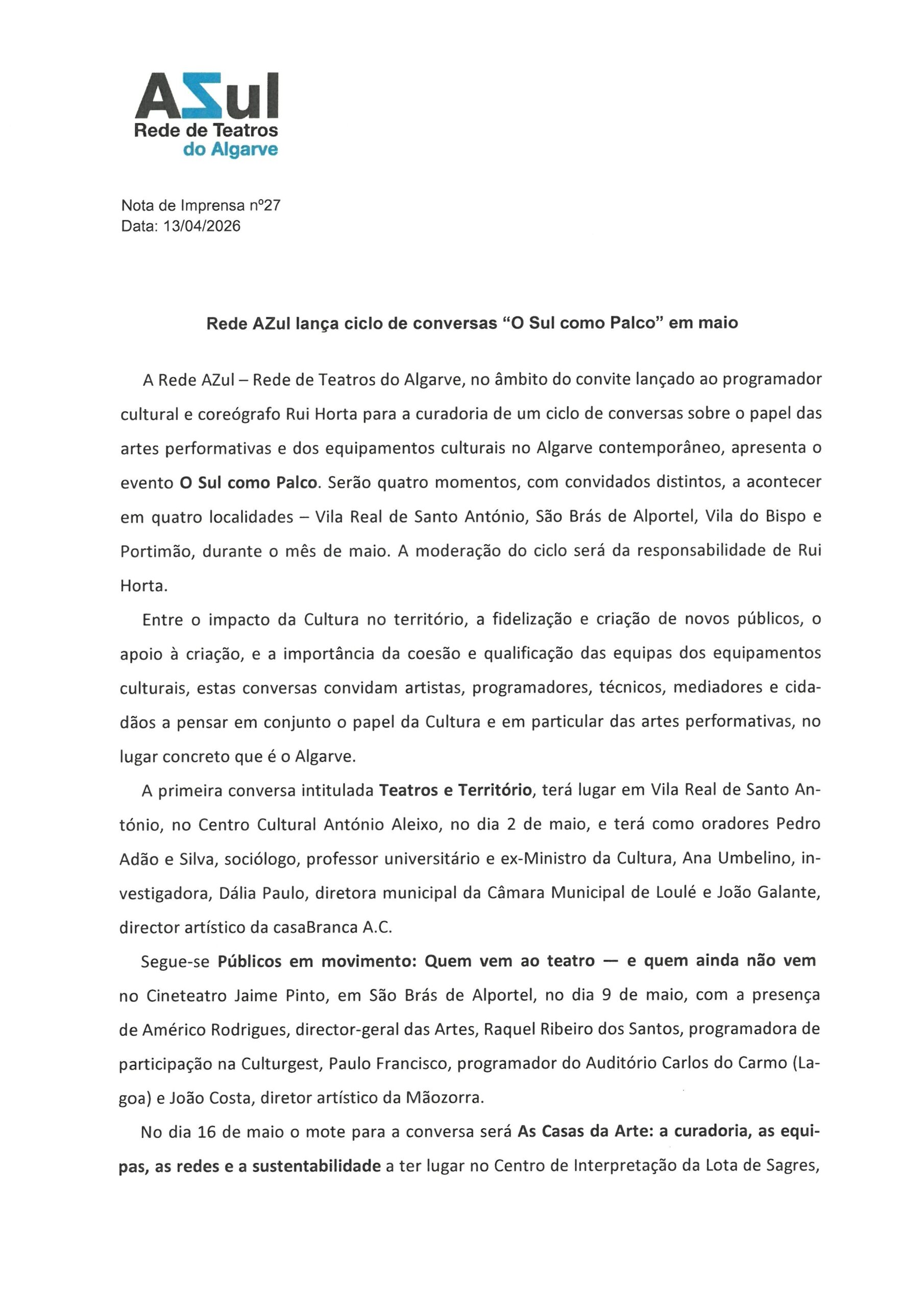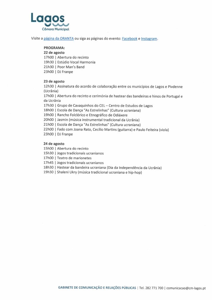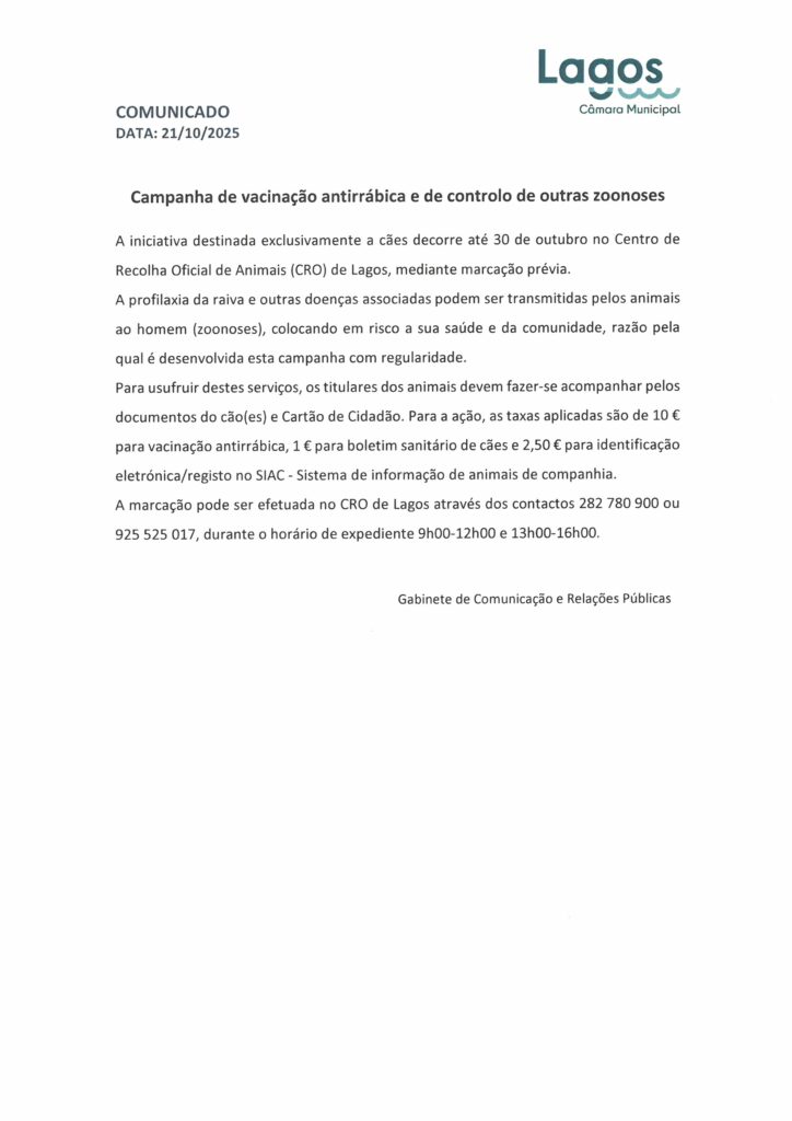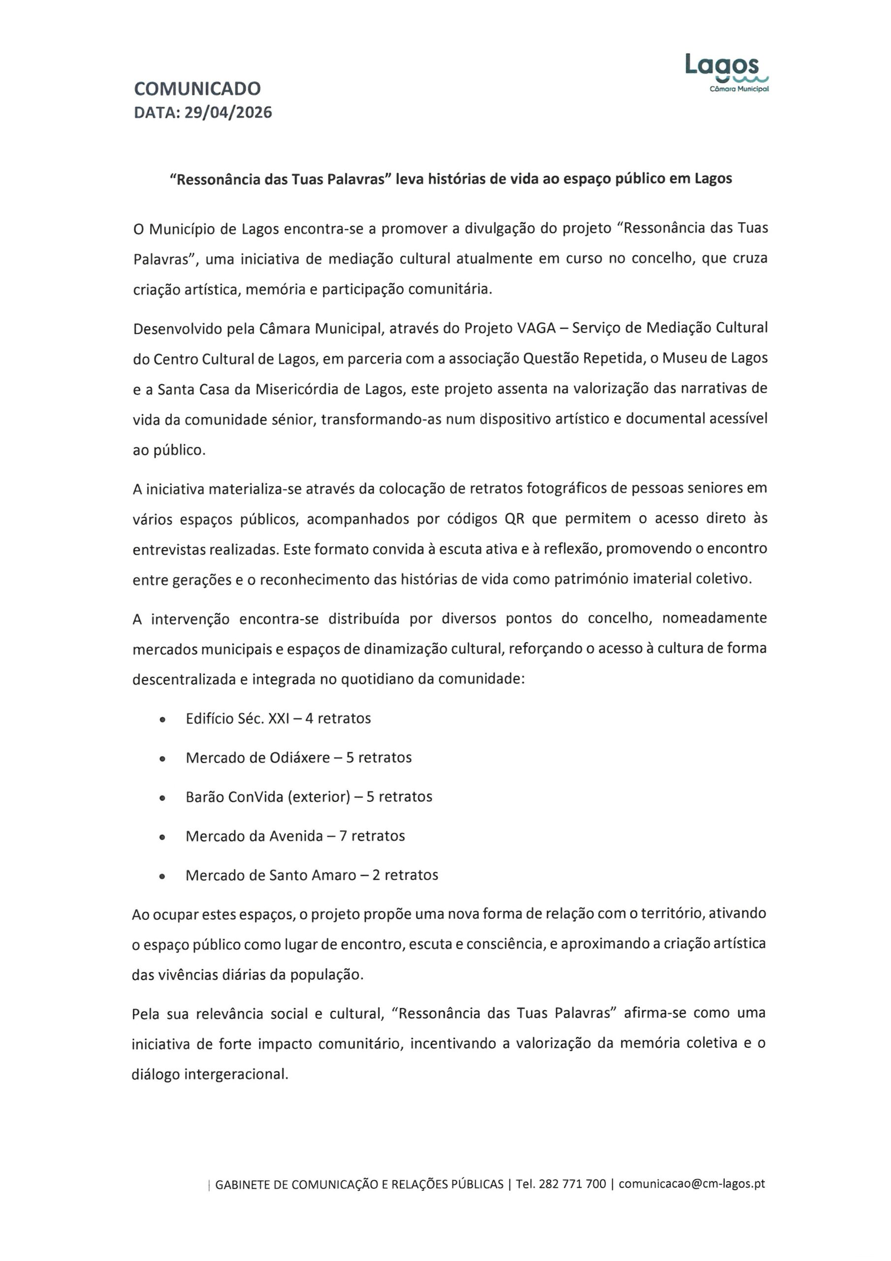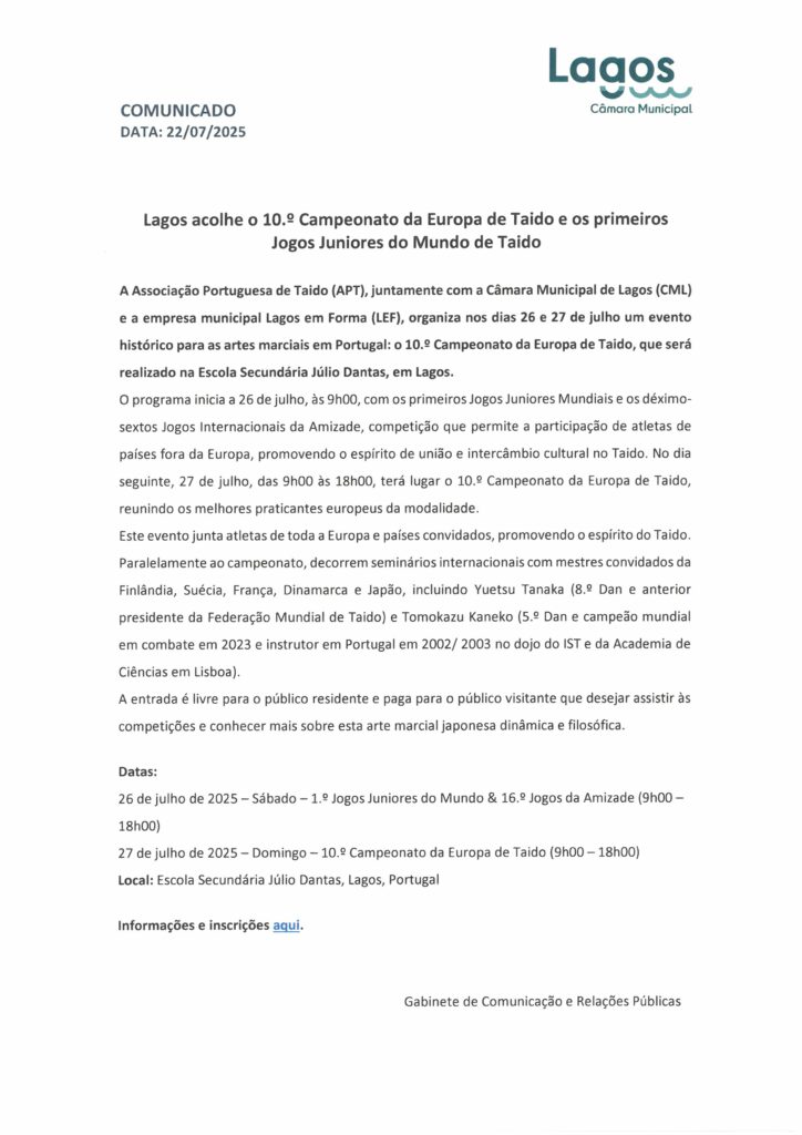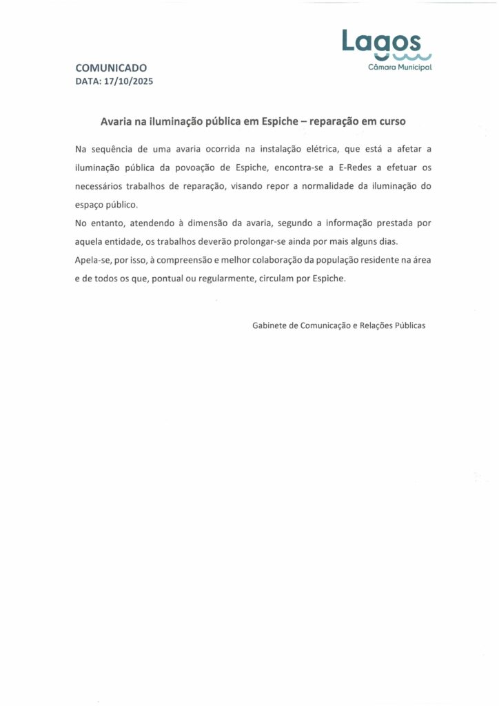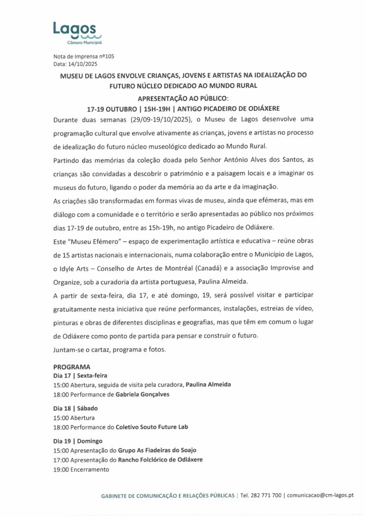 CÂMARA MUNICIPAL DE LAGOS - NOTAS DE IMPRENSA