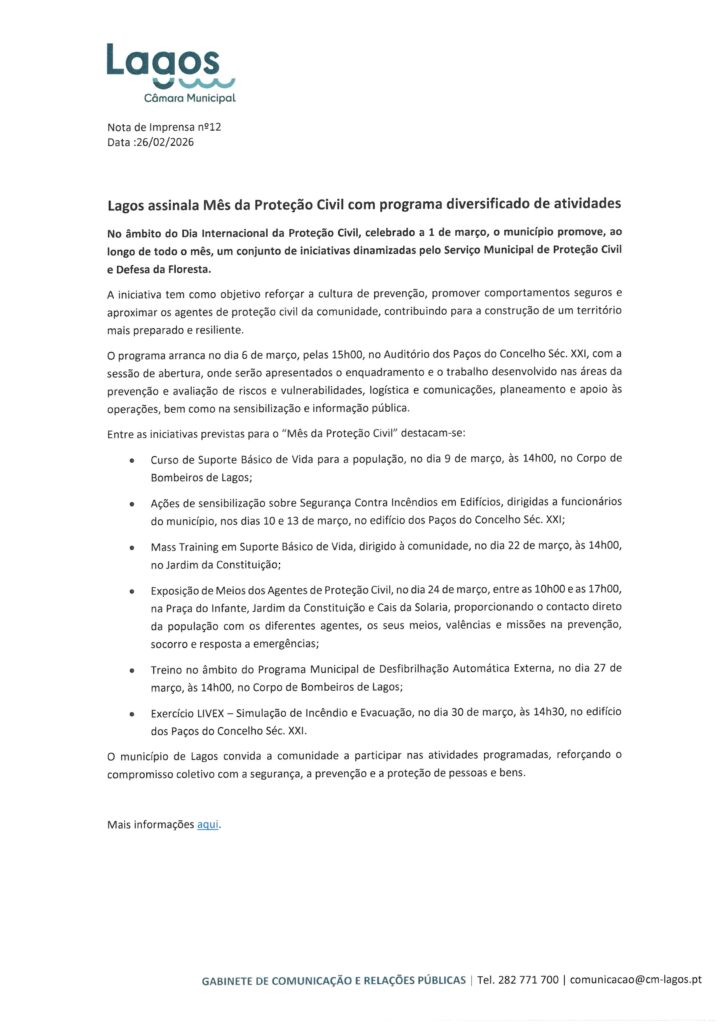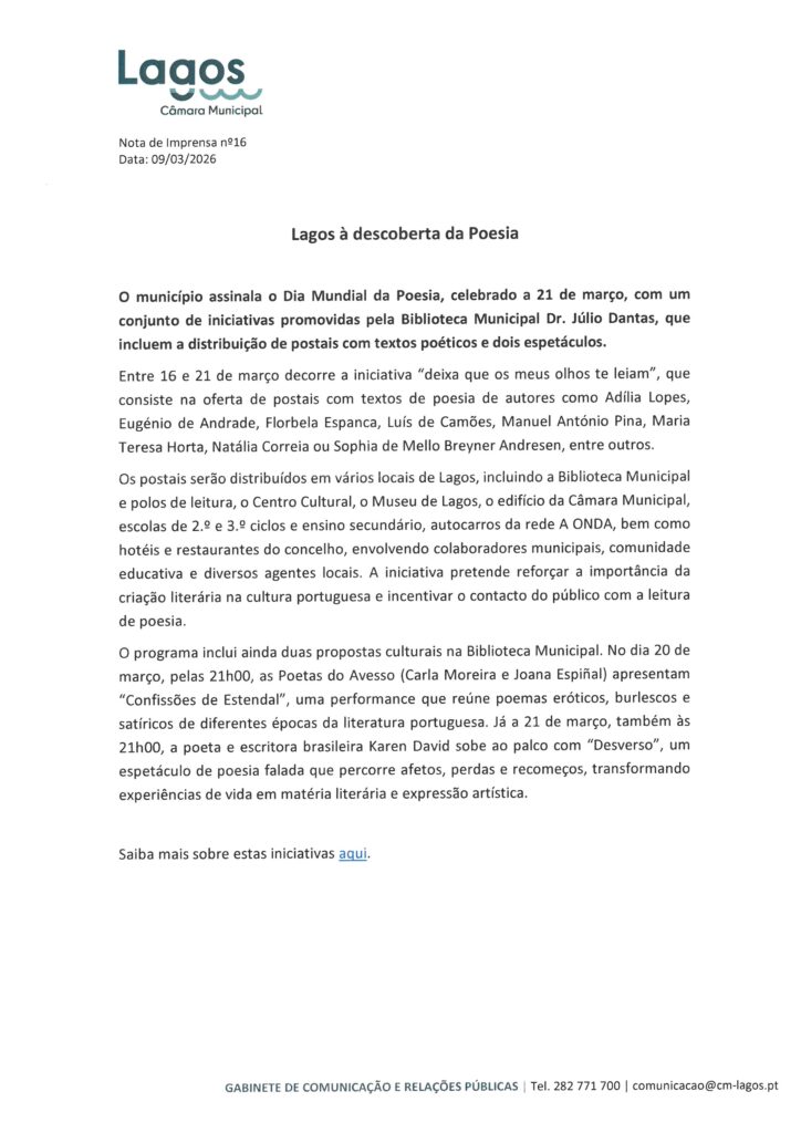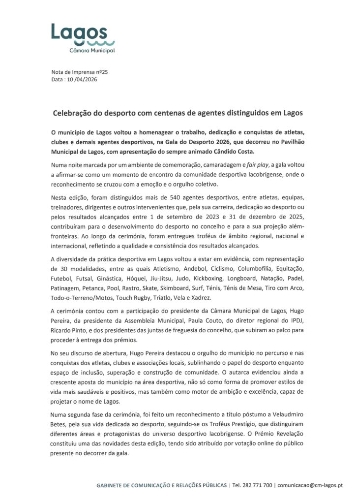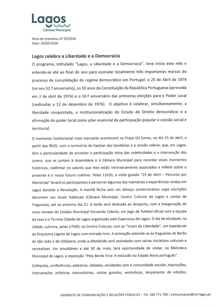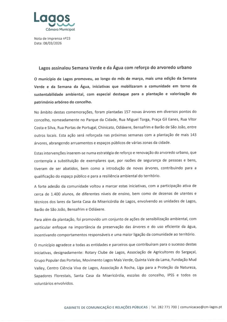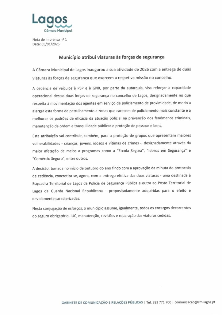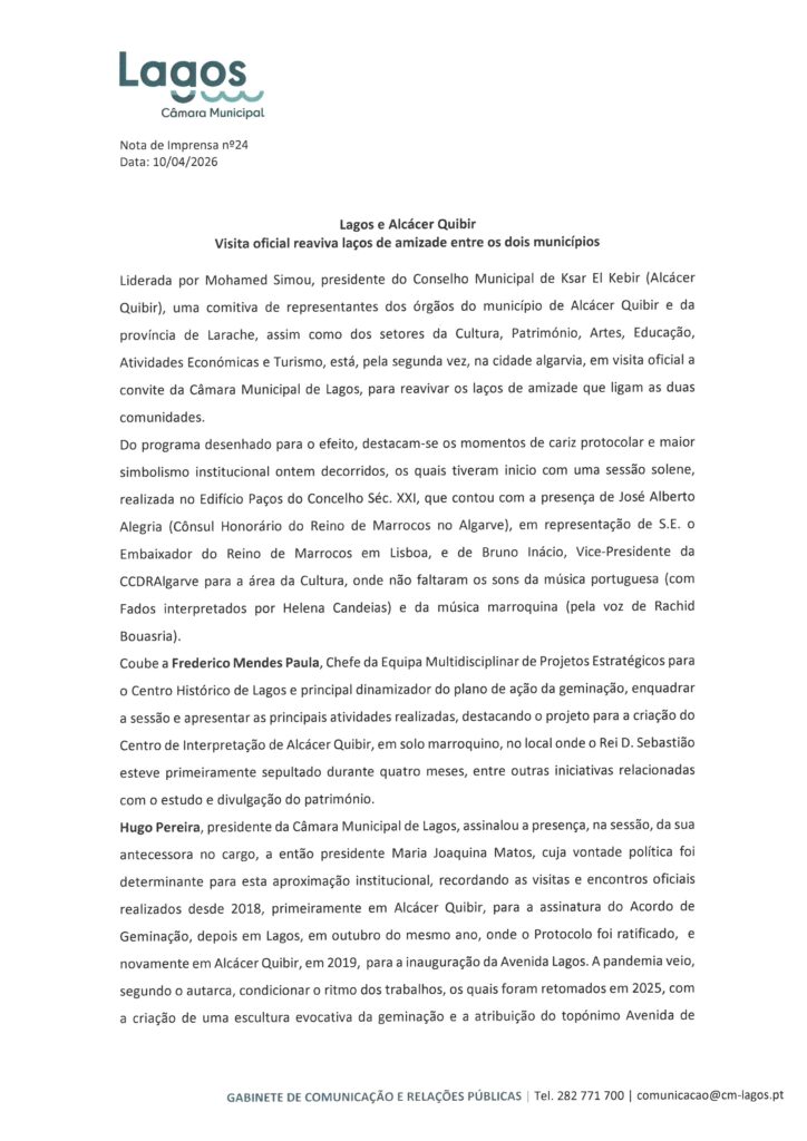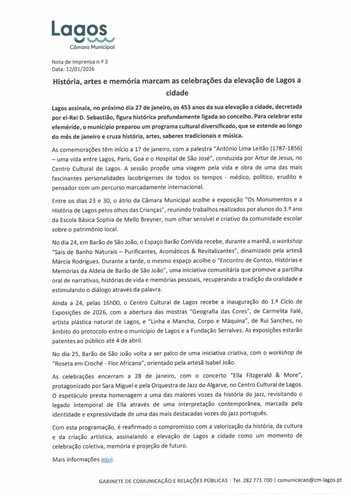 Câmara Municipal de Lagos – Notas de Imprensa