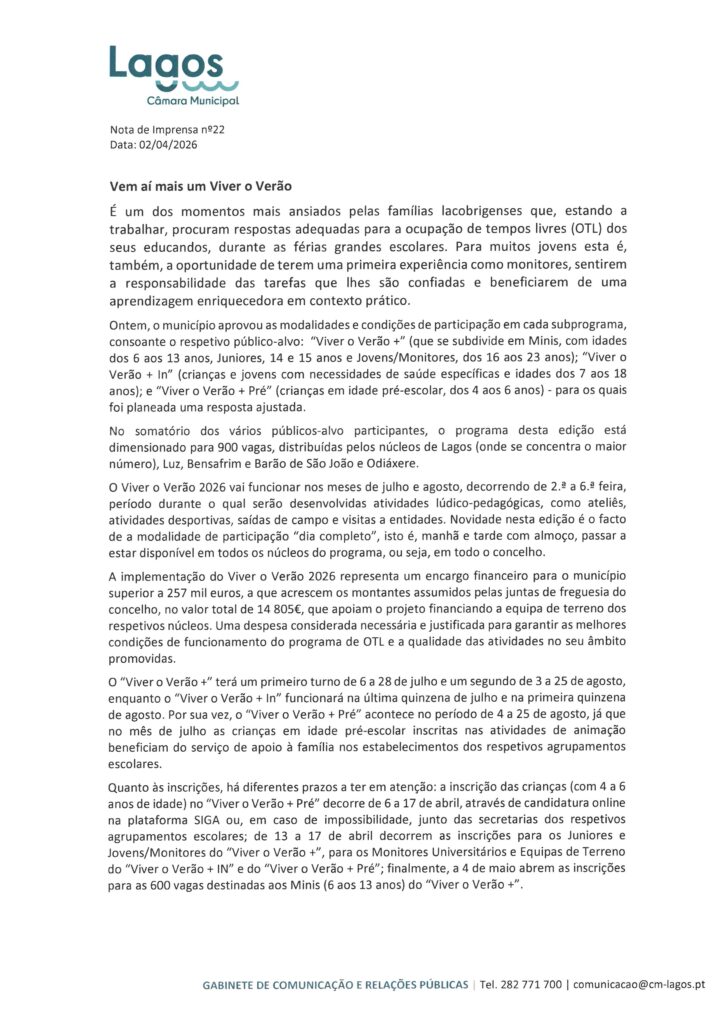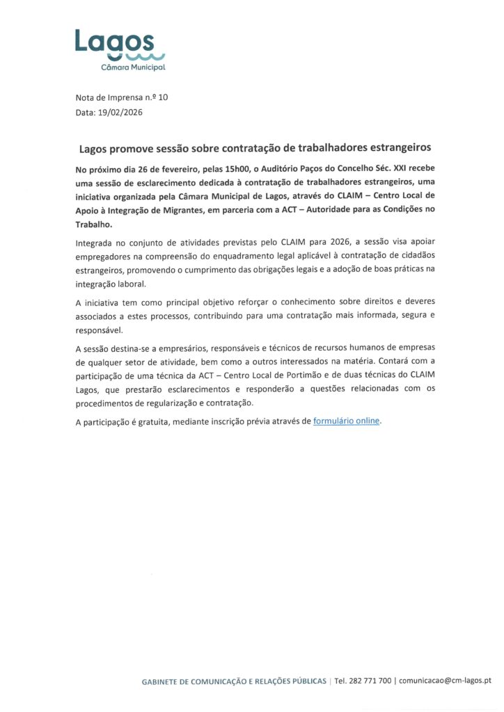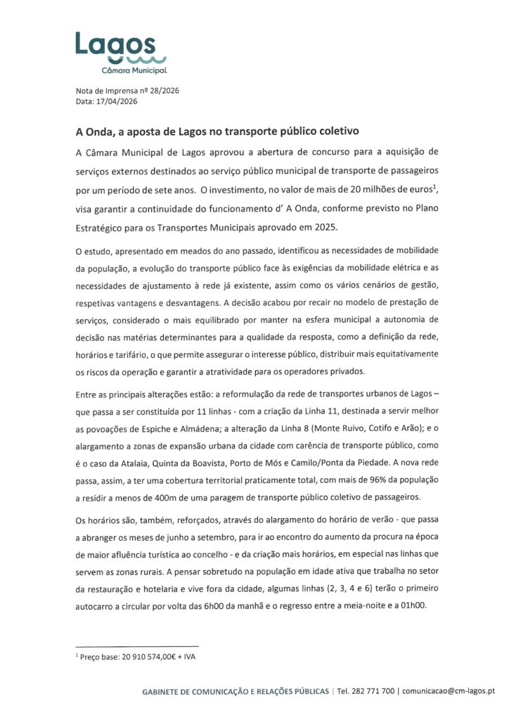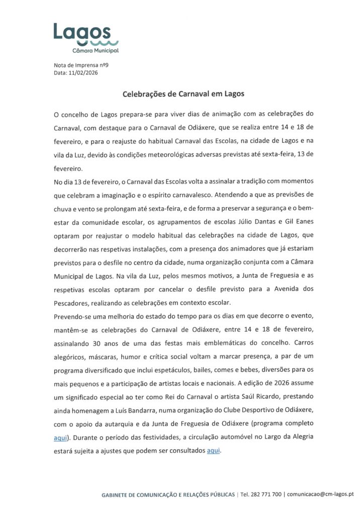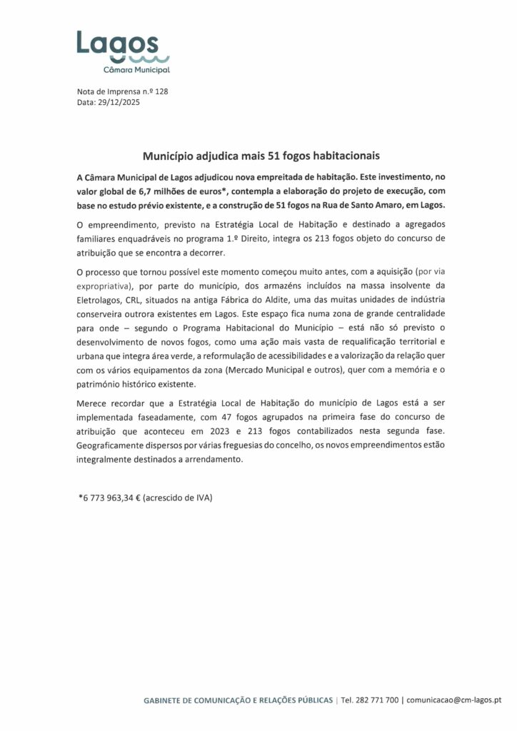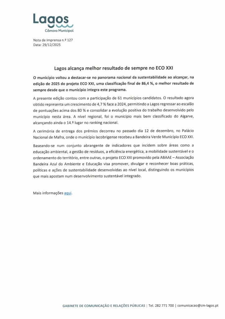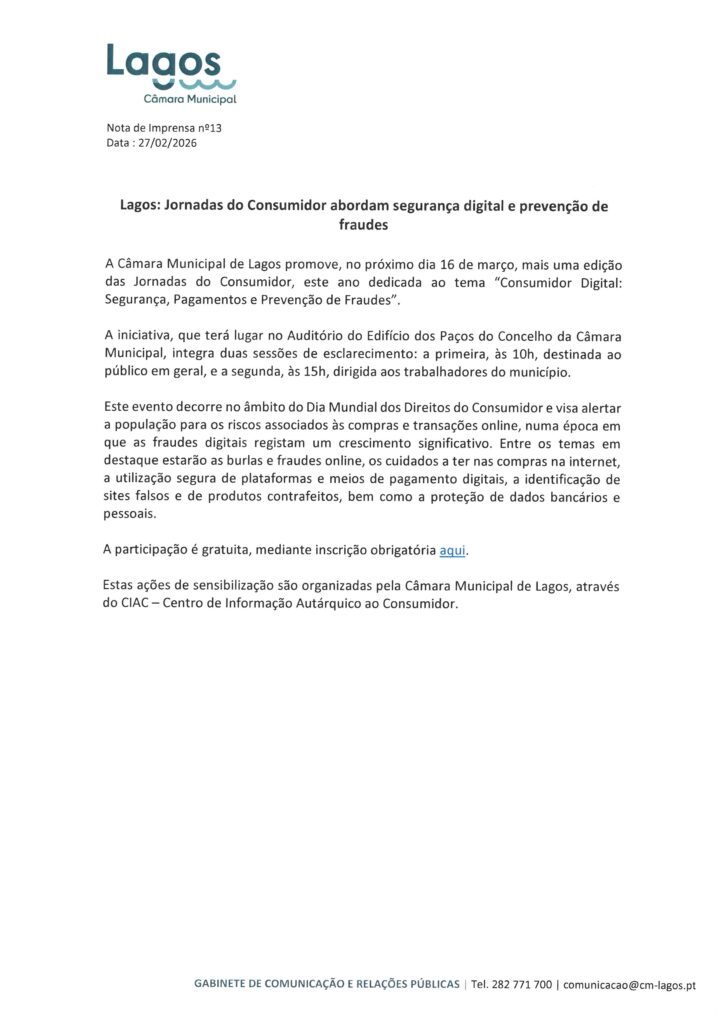 Câmara Municipal de Lagos – Notas de Imprensa