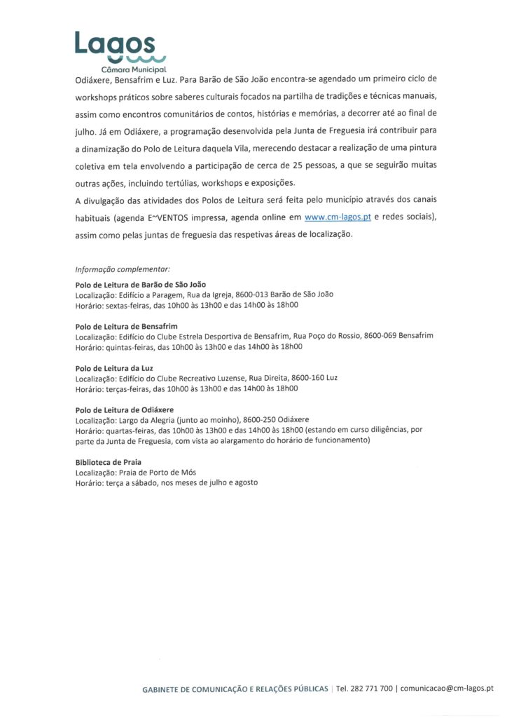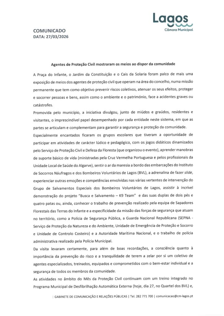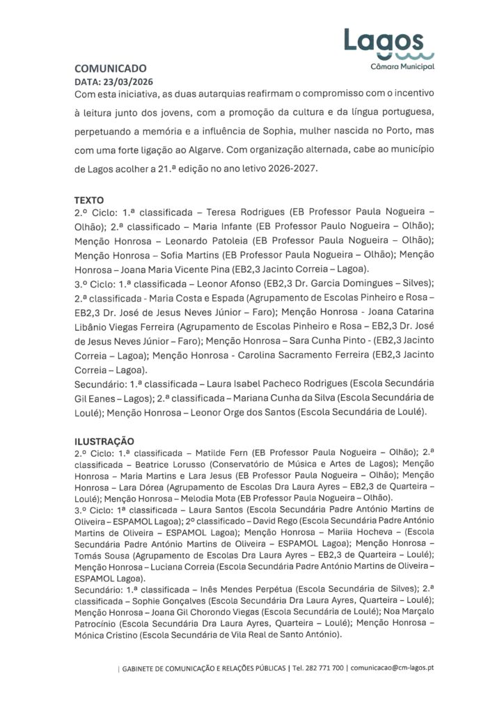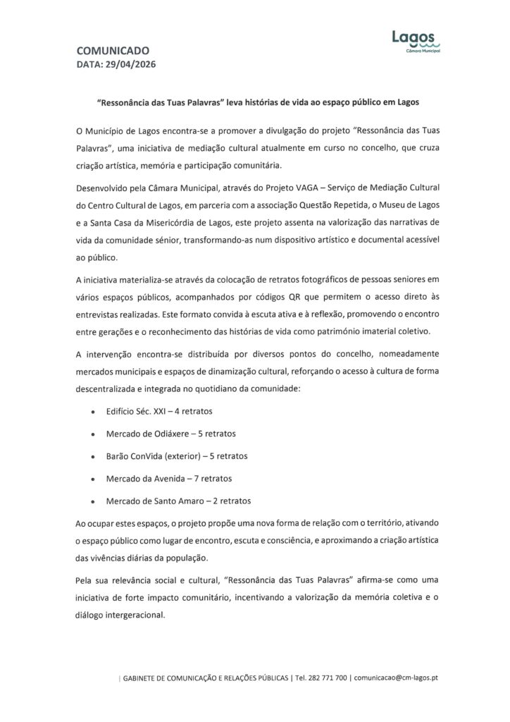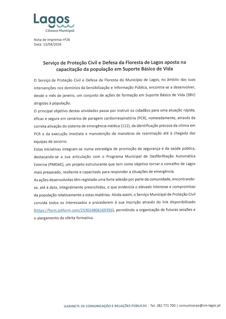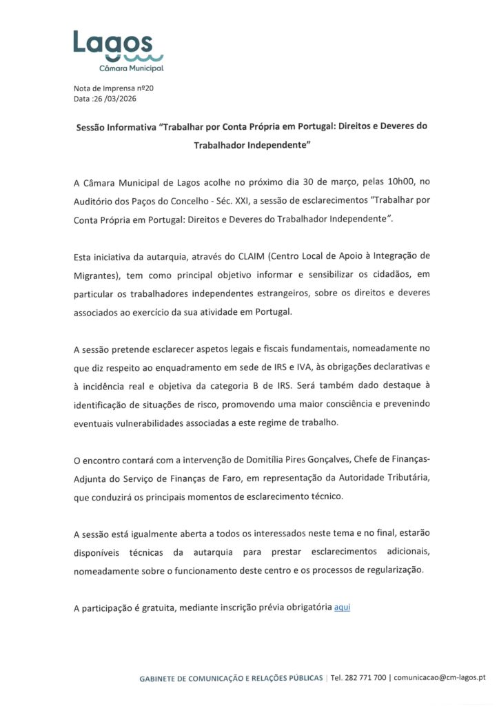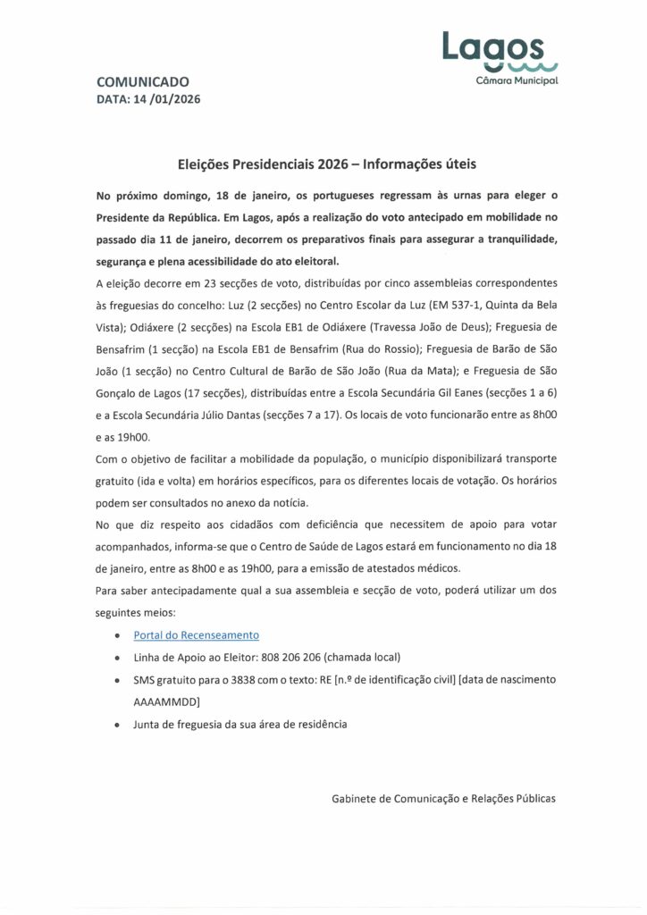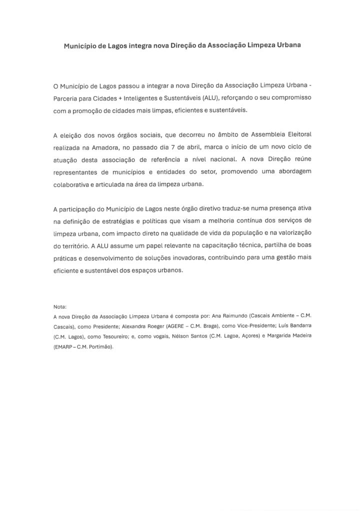 Câmara Municipal de Lagos – Notas de Imprensa